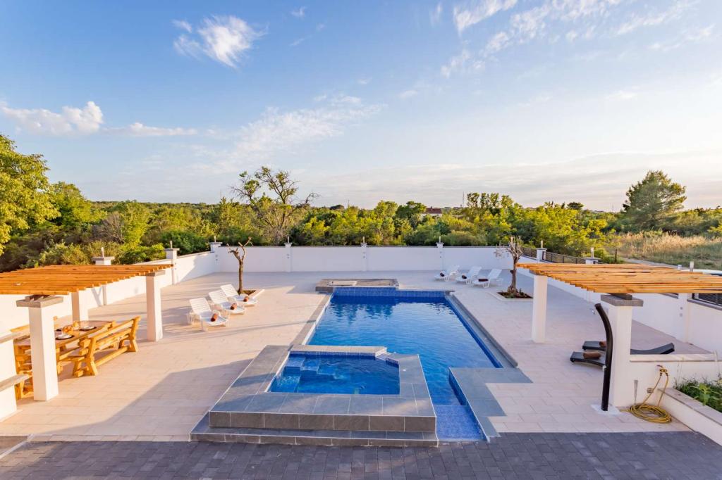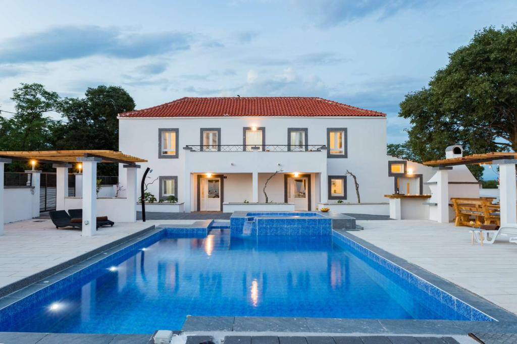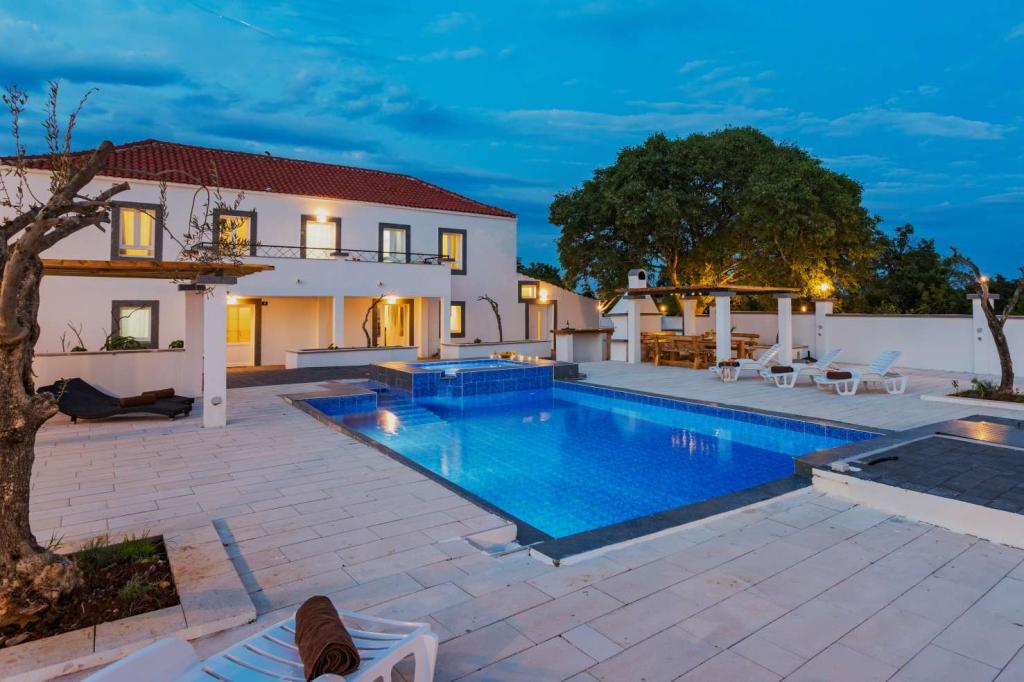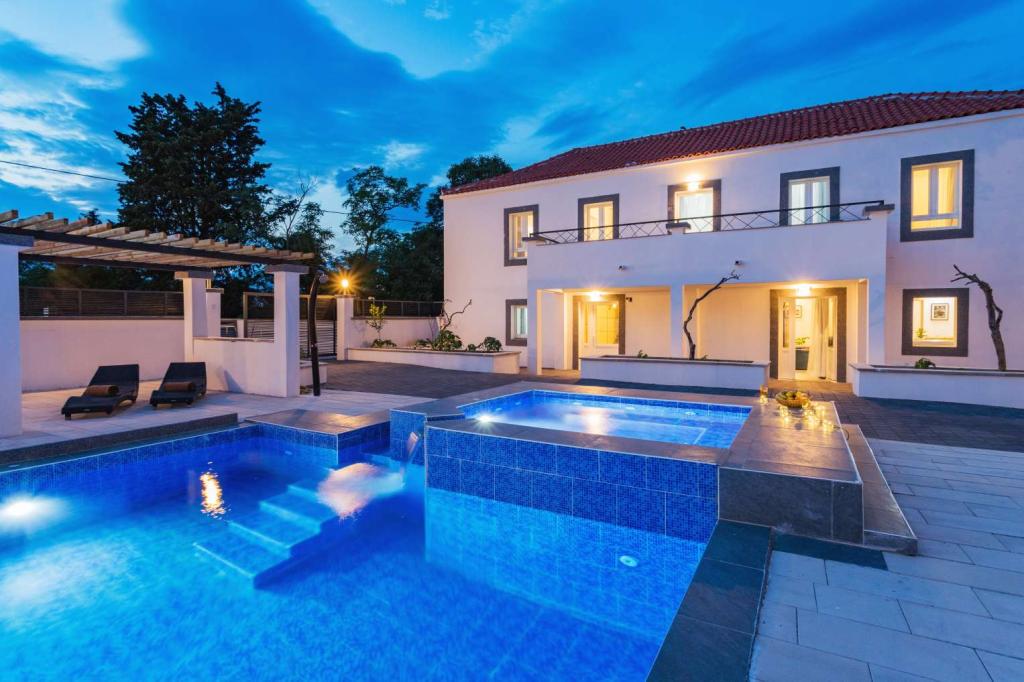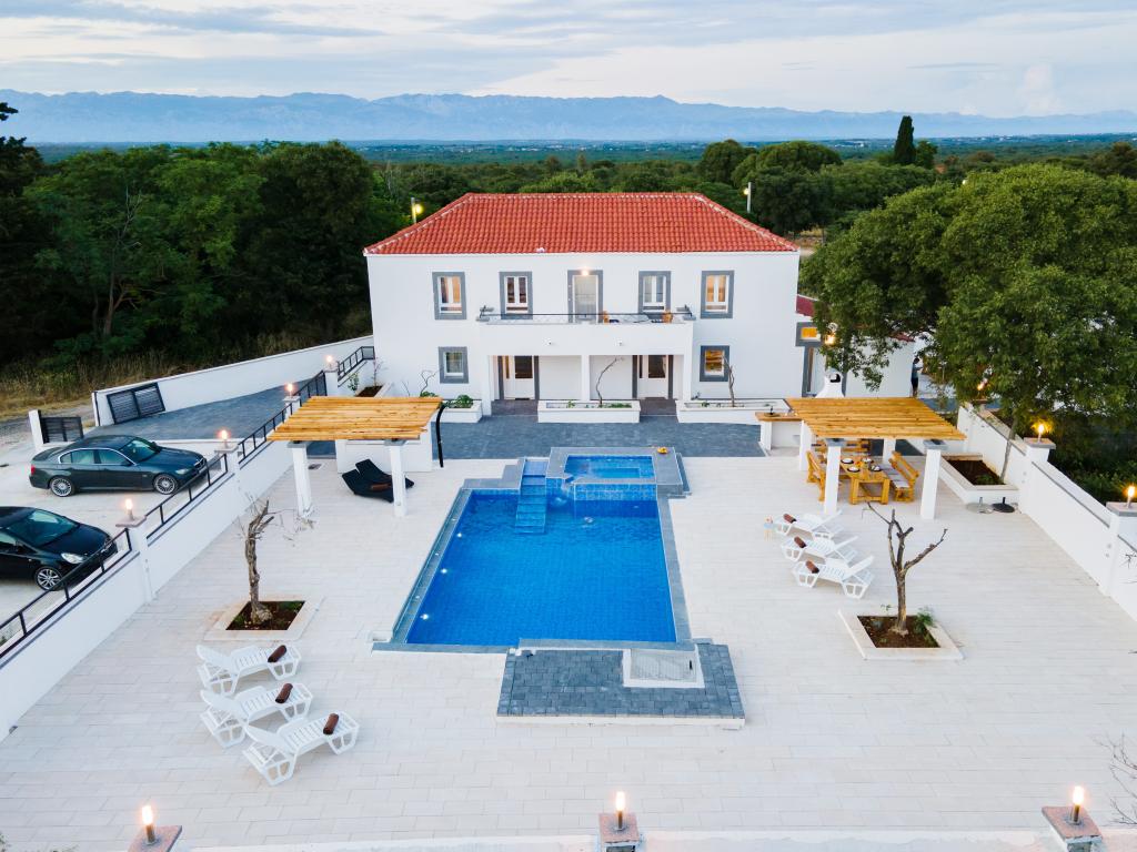Villa Olana is located in a quiet part of Zadar. and offers free WiFi, air-conditioned accommodation, a shared lounge and a garden with an outdoor pool. The property also includes free private parking and a shared kitchen and grill. The villa has 5 bedrooms (10 people), 4 bathrooms, bed linen, towels, flat-screen TV, a dining room, a fully equipped kitchen and a patio overlooking the pool. Villa guests can relax on the terrace. Villa Olana is 3.8 km from Providur's Palace and 4.3 km from the National Museum in Zadar. The nearest airport, Zadar Airport, is located 10 km from the property