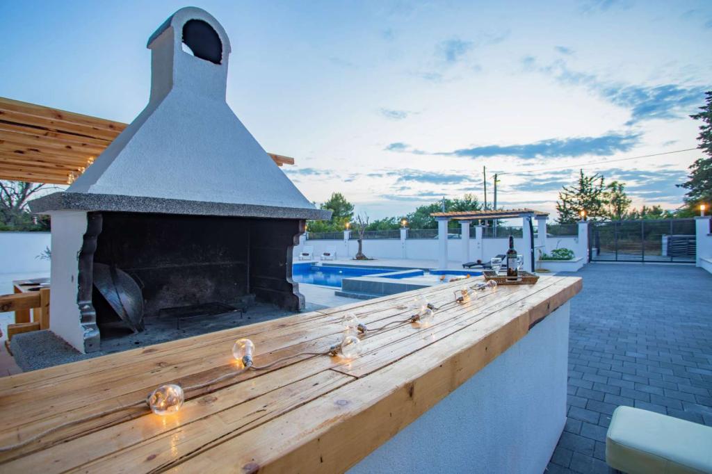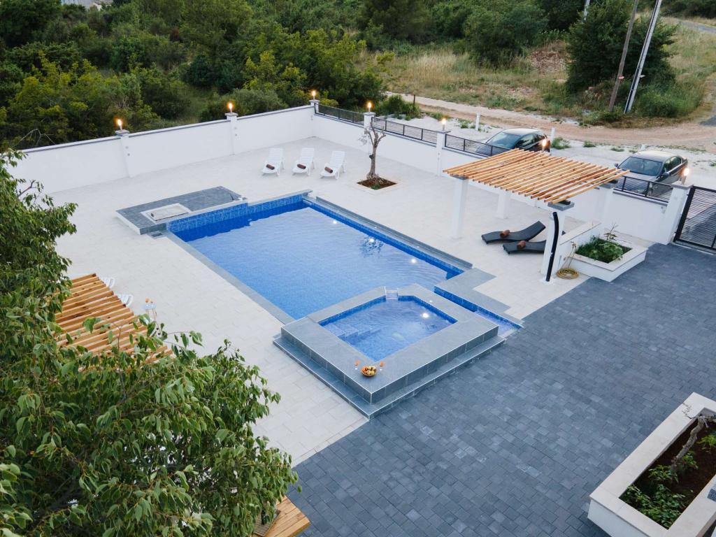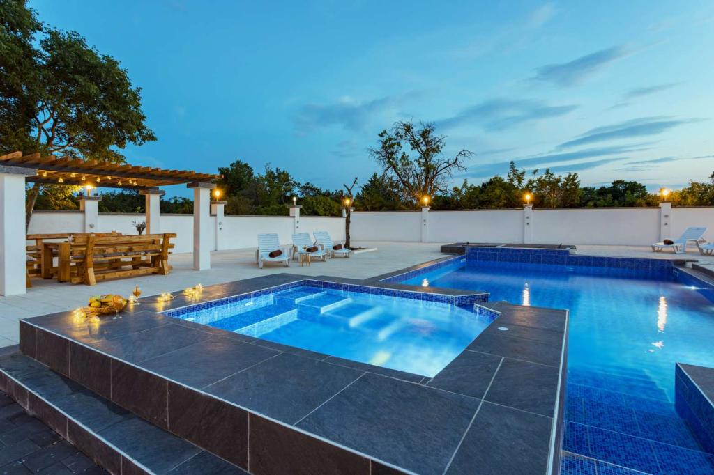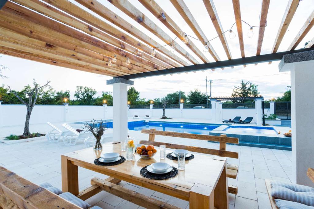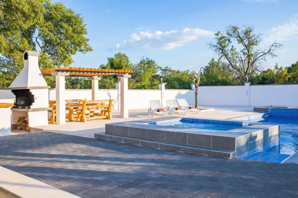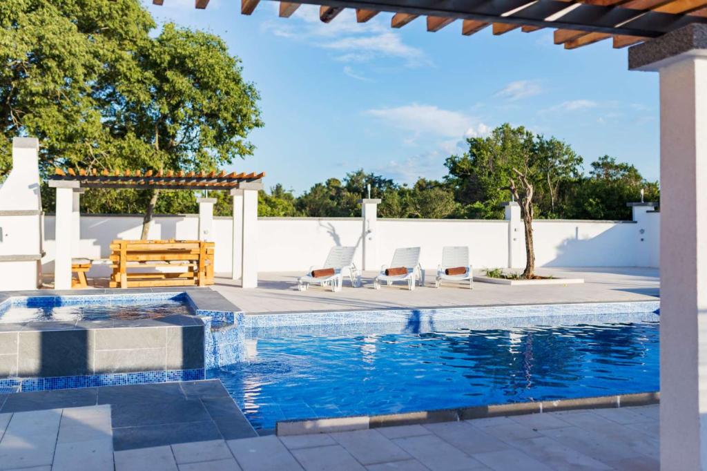 Villa Olana is located in a quiet part of Zadar. and offers free WiFi, air-conditioned accommodation, a shared lounge and a garden with an outdoor pool. The property also includes free private parking and a shared kitchen and grill. The villa has 5 bedrooms (10 people), 4 bathrooms, bed linen, towels, flat-screen TV, a dining room, a fully equipped kitchen and a patio overlooking the pool. Villa guests can relax on the terrace. Villa Olana is 3.8 km from Providur's Palace and 4.3 km from the National Museum in Zadar. The nearest airport, Zadar Airport, is located 10 km from the property
