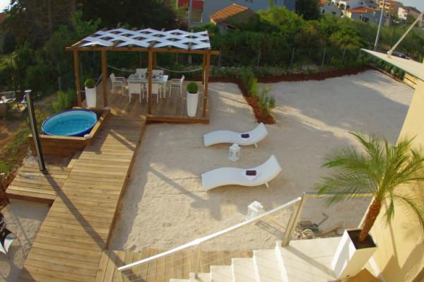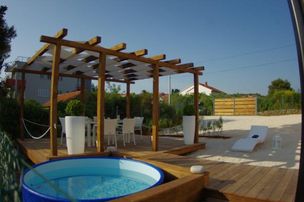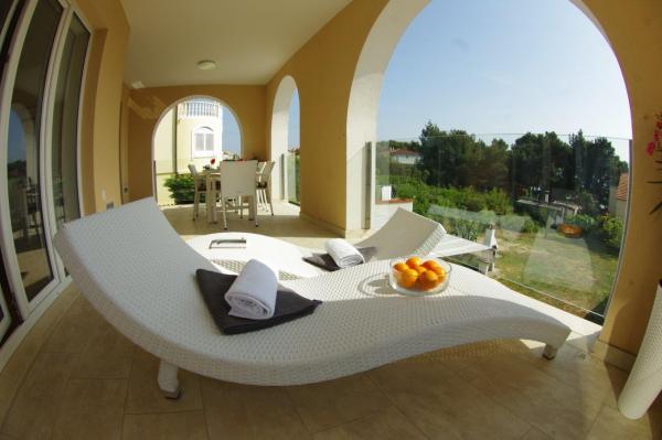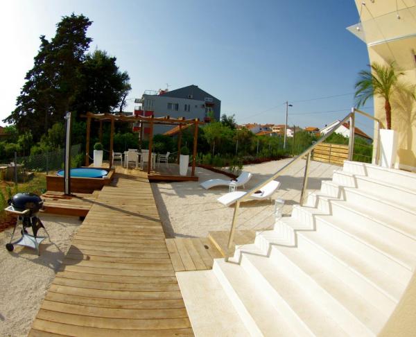 Blue and luxuriously furnished apartments in the elite part of Zadar, the building is 100 meters from the beach Diklo. Villa Zadar is located in a quiet and dead end and is ideal for relaxation, away from the city center, about 3, 5 km. In the backyard terrace, Jacuzzi and barbecue for common use of the guests. Parking is free parking.
