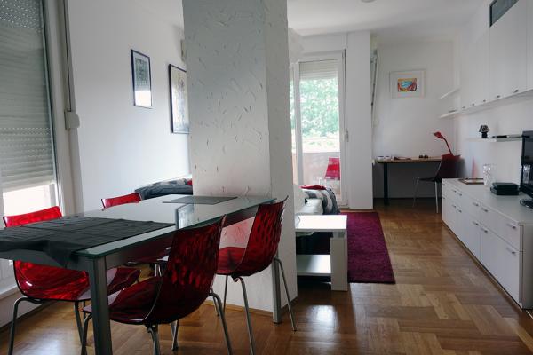 Comfortable and modernly furnished apartment in a 2nd floor apartment with lift and video surveillance. It is located in a quiet street in the most beautiful Zagreb neighborhood of Maksimir, only a few minutes walk from the Maksimir Park (ZOO, stadium). In the immediate vicinity there are shops, cafes, bakeries, pharmacies, as well as tram and bus stops. Close to the Faculty of Economics, Libertas, KBC Rebro, Dubrava, Petrova, Srebrnjak. In the apartment we can accommodate up to 4 people. The apartment itself consists of: bedroom, bathroom with toilet, hallway, kitchen, dining room, living room, small work area and small loggia. Apartment Davor offers you everything you need for a pleasant and relaxed stay: hygiene supplies, towels, bedding, cooking utensils, oven, microwave, kettle, toaster, flat screen TV with large selection of channels, free Wi-Fi and many other benefits . There is also a garage parking space at your disposal. Children and / or pets are very welcome.