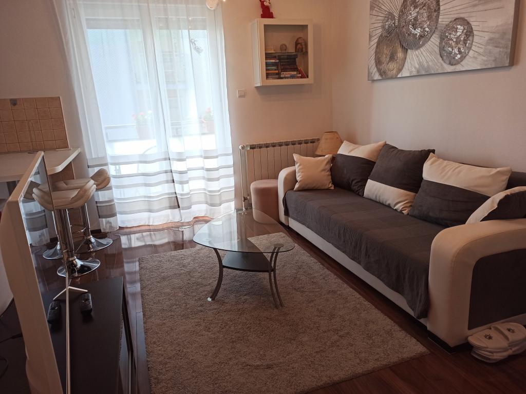 Fully equipped apartment on the 4th floor, consists of 1 bedroom with double bed 140 x 200 cm, living room with kitchen, where there is a sofa bed max. dimensions 140 x 200 cm, and bathrooms and balconies. The apartment is ideal for 2 people, but the possibility of staying up to 4 people. Garage parking space inside the building. The building is located 3 minutes walk from the tram station (Savska street - station Vjesnik). Distance to the center 2 to 3 km, or 5 to 7 tram stops. In the neighborhood there are cafes, restaurants, patisserie, children's park, post office, church, Lidl, Spar, DM, Erste Bank and more ..