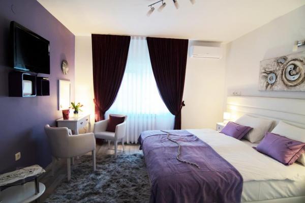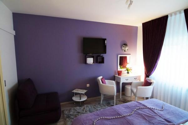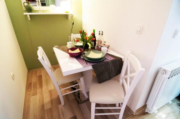 4-star studio apartment LUXURY LICITAR HEART is a newly-designed studio apartment of 32 m2, intended for daily rent. Romanticly decorated and refined with details, it offers the guest the comfort of their heat. Ideal for one to two people. Surrounded by greenery and silence, it is well connected with traffic. It consists of a sleeping area, a kitchen with a dining area, a bathroom with a toilet and a corridor. Equipped with fridge, microwave oven, ceramic hotplate, water cooker, toaster and utensils, personal toilet bowl, hair dryer, iron, ironing board, towels and everything needed for a sense of purity. LCD TV, free and super-cooled Internet, air conditioning and central heating, the contents of a pleasant and carefree stay are essential. Apartment is completely non-smoking. In front of the apartment are 2 parking spaces at an extra cost per night. With a multitude of ambient lighting and above all a cozy interior you will not miss the warmth and comfort of your own home.