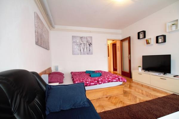 The apartment is located in the wider center of Zagreb, at Zatišje 8A Street, on the street between Sveti Duh Street and Vrhovec Street, above Ilice. Near the apartments there is the Sveti Duh Hospital, the Vineyard Hospital, the Clinic for Tumors and Klaić Hospital. The apartment is five tram stops away from Ban Jelacic Square. The apartment is located on the ground floor of a residential building in an extremely quiet street.