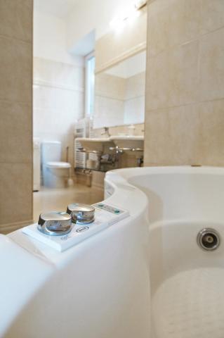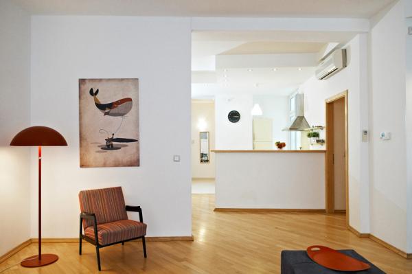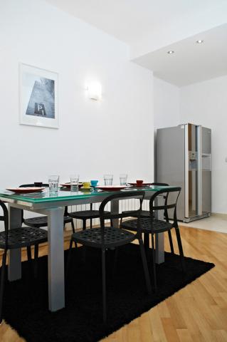 Luxurious apartment to rent in the very center of Zagreb, in Petrinjska Street offers guests an ideal opportunity for exploring the city, city life and provides a sense of the city of tradition, culture and atmosphere first hand. The apartment is ideal for business trips, family accommodation and accommodation of smaller groups. The apartment spreads on 113 m2 on 1st floor which has lift, and two bedrooms and spacious living room provides comfortable accommodation for up to 7 persons. The apartment is equipped with a large bathroom with underfloor heating, built-in whirlpool tub, walk-in shower, two sinks and toilet and a small bathroom with walk-in shower and a toilet bowl. Besides being characterized by a flat space, location and modern interior, gives it a special value, complete technical equipment that includes LCD television, cable television, wireless Internet, air conditioning, alarm and electric blinds. Stan also has private parking in the yard.
