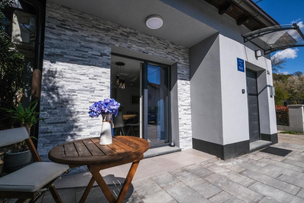 Villa Kaja is located in the quiet northern part of Zagreb. The modernly equipped house consists of 2 bedrooms, a bathroom and a kitchen with a dining room and a living room. There is a private parking lot in front of the house. The house is entered with a unique code created especially for your stay. The house has unlimited internet and a TV with Netflix. The pleasant mountain air from the nearby Medvednica makes this property a real green oasis of peace! Ideal for families with children. The apartment is located only 5 minutes by car from the center of Zagreb. If you decide to use public transport, you will reach the Mihaljevac roundabout in about 10 minutes on foot, from where tram line no. 14 will take you to Zagreb's main square, Ban Jelačić Square, in about 10 minutes. Villa Kaja provides unlimited wireless internet. Everything you need is available in the house. You have the whole space to yourself!