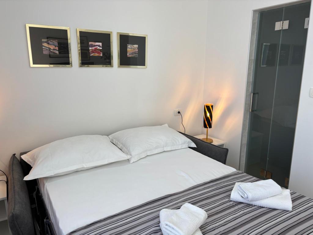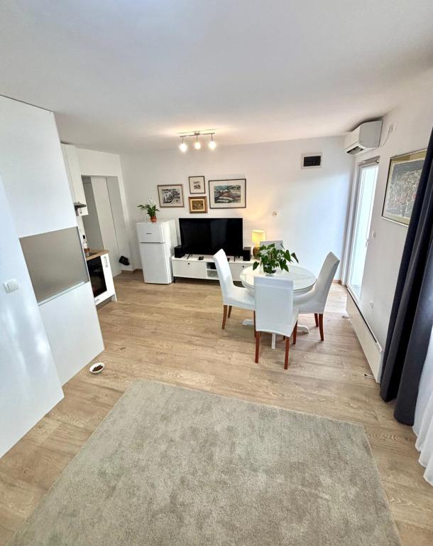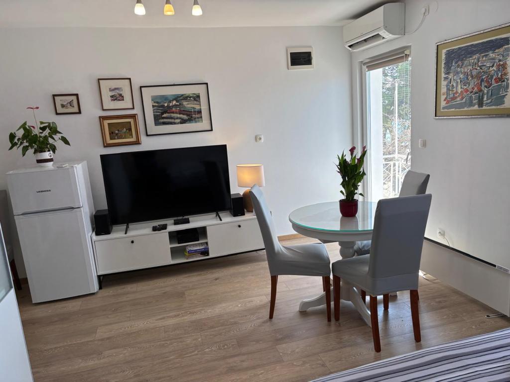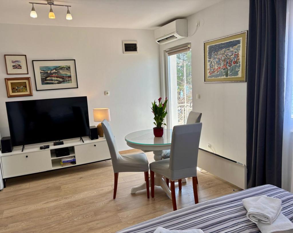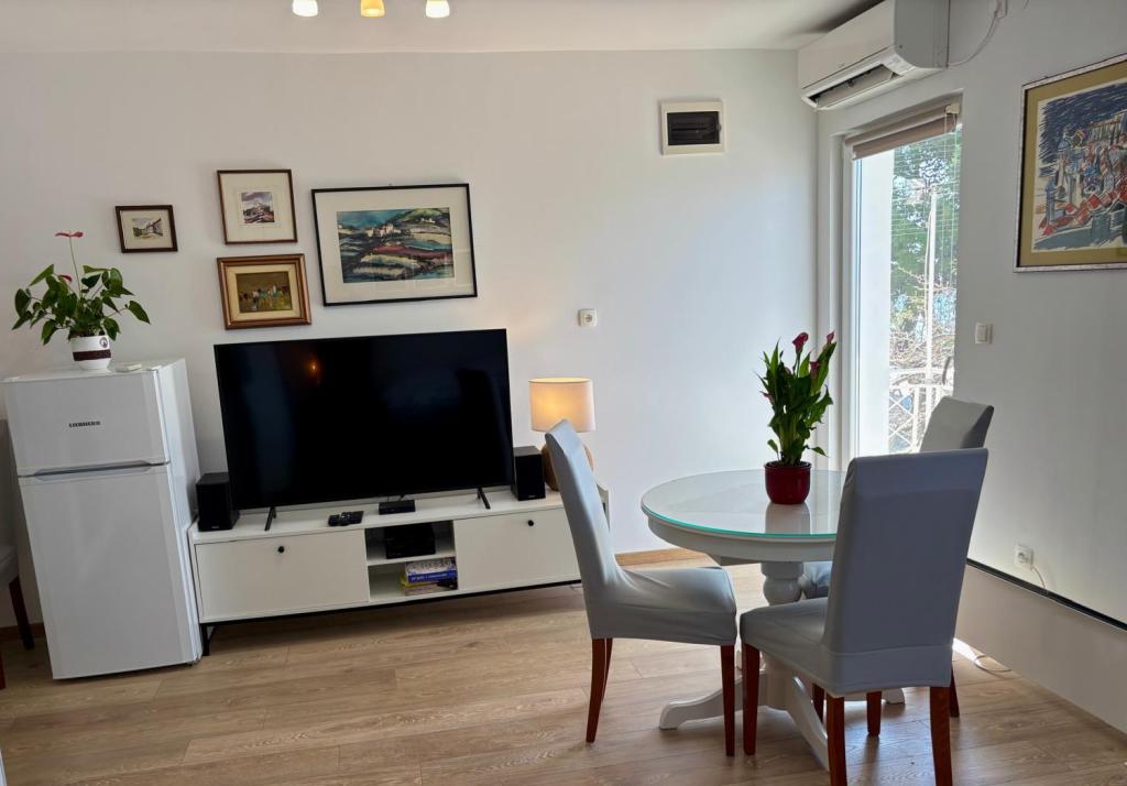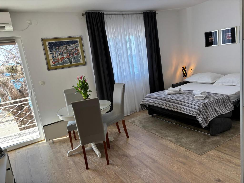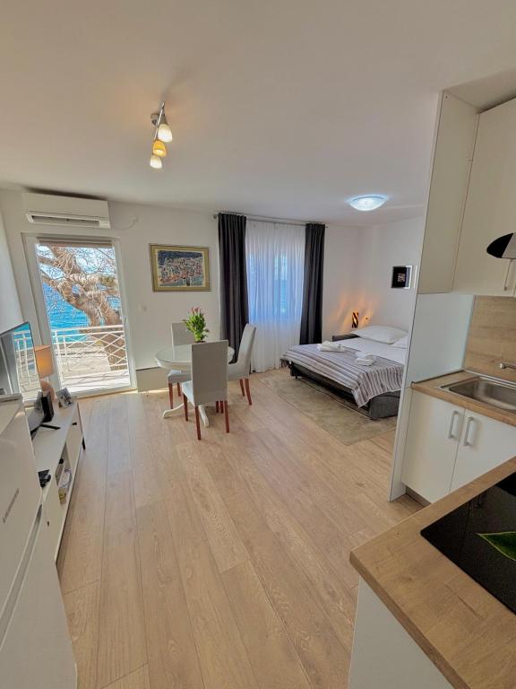 The studio apartment is fully and modernly equipped on the first floor of a family house, which is 30m from the sea and a beautiful pebble beach with a gradual entrance to the sea. There is parking for a car in front of the house, and in the yard there is a gazebo with a barbecue and tables for staying in the shade. Nearby are shops, restaurants, a pastry shop, and at the entrance to the town is the Plodine shopping center.