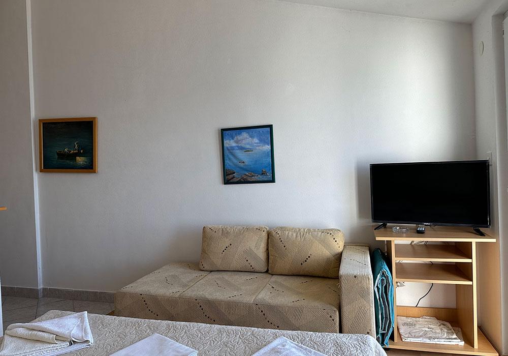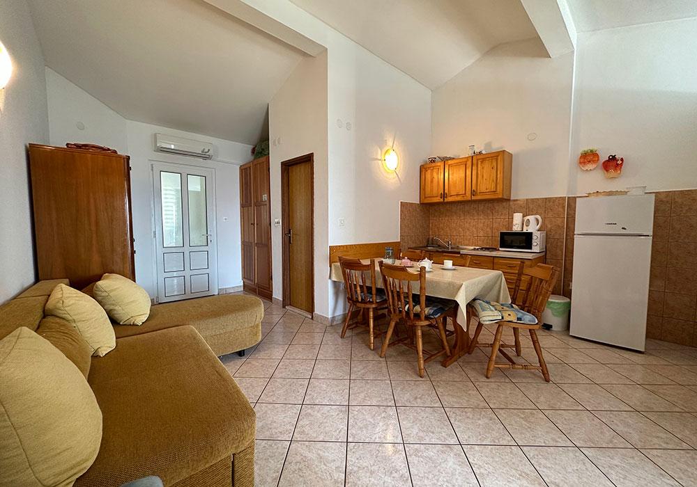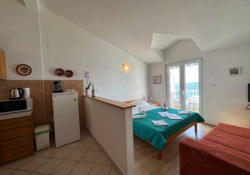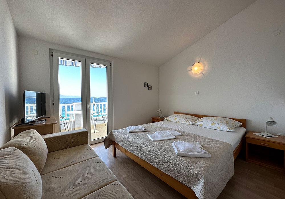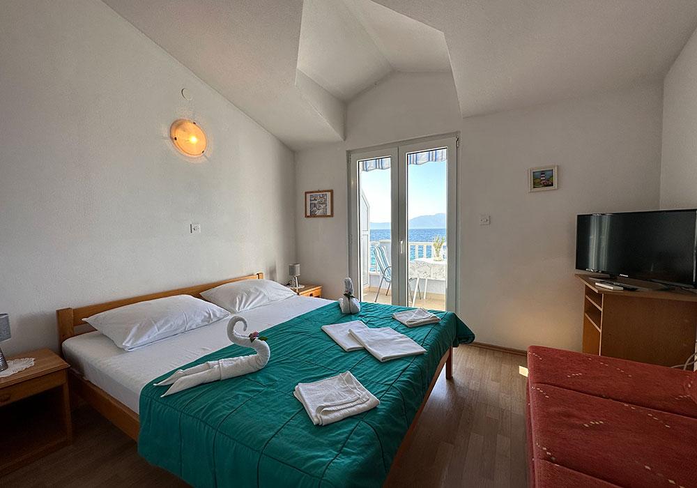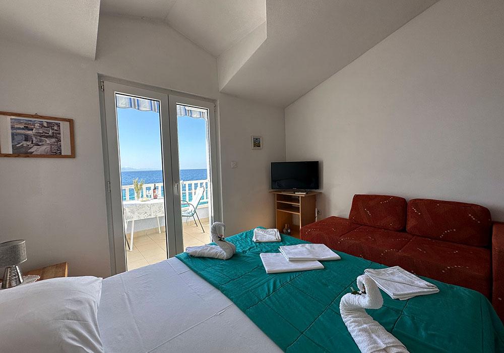 Apartments Kosovic are located in Zaostrog on the coast 10 meters from the line. The balcony offers a beautiful view of the surrounding islands (Hvar, Korcula and Brac) and Peninsula (Peninsula). Nearby there are various water sports and tennis courts. On the surrounding mountains close to marked trails for safe hiking to the peaks Viter 770 m, Šapašnik 920 m above sea level. Panoramic road in mountain and coastal cycling a distance of 25 km from Graz to Drvenik. Complete information for excursions in the nearby towns of Dubrovnik, Split, Mostar, Korcula and Hvar, inquire with the owner. Within 50 km there is the Nature Park slope, waterfalls Kravica, the mouth of the Neretva River, rafting through the Cetina canyon, etc. For the faithful and pilgrims also holy shrine Vepric near Makarska and global pilgrimage site of Medjugorje.