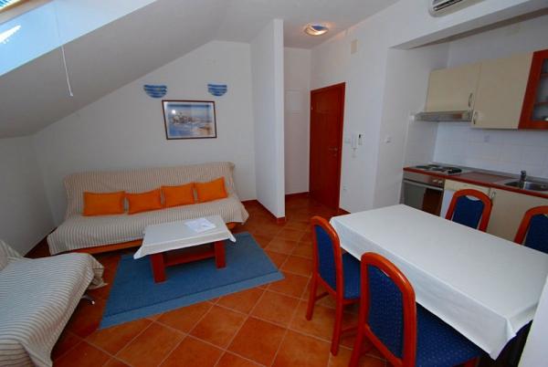 Read more Accommodation unitsTourist tax is not included in the price 1. 6. - 30. 9. - Adults: 1 €/night, Children (12-18 years): 0. 5 €/night Other months - Adults: 0. 8 €/night, Children (12-18 years): 0. 4 €/night For the stays less than 3 nights the price is increased by 30% Parking place per car costs 3€/night (july and august) Additional cleaning is charged 35€ Price for breakfast is 4€/person and dinner 6. 5€/person Lunch is served \a la carte\ Breakfast is served in the period from 8:30 to 10 am and dinner from 18 to 21 hours