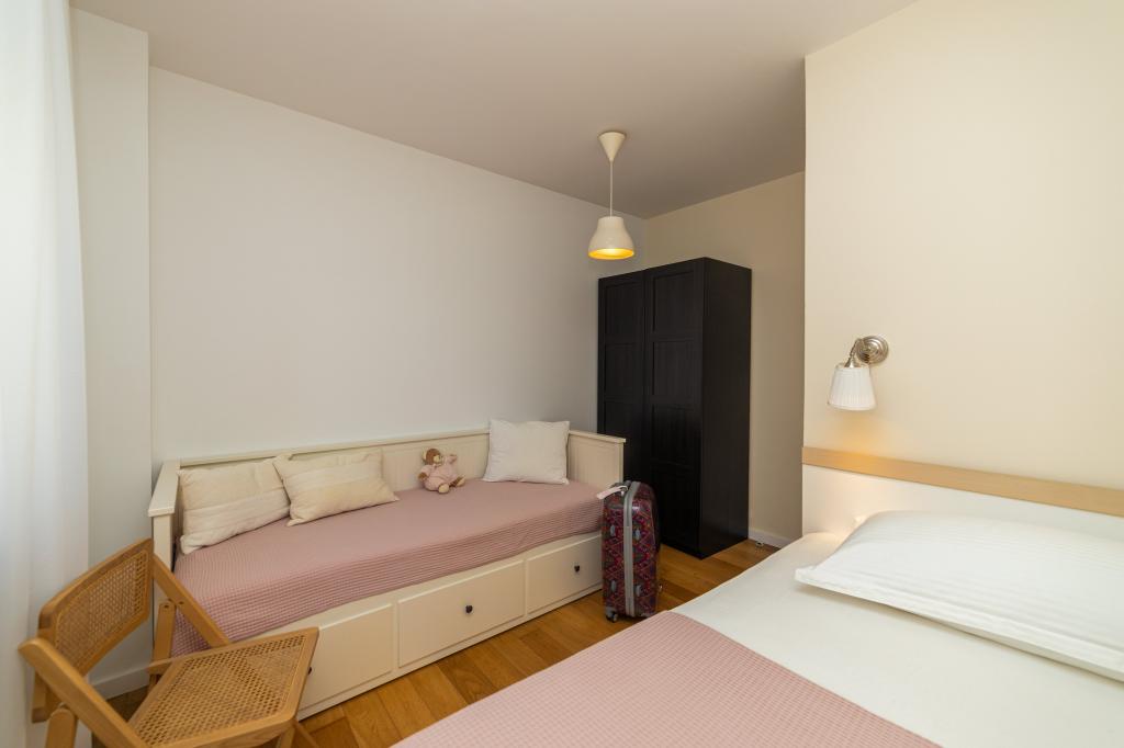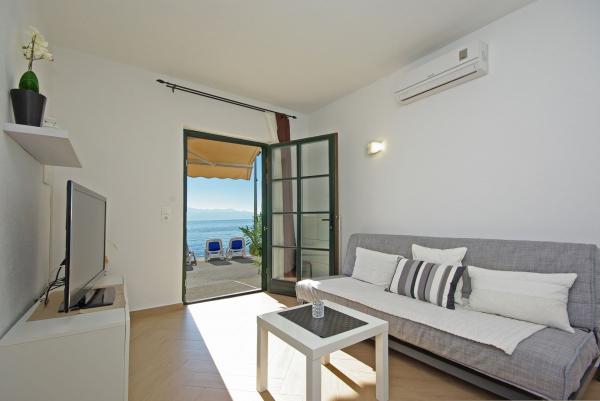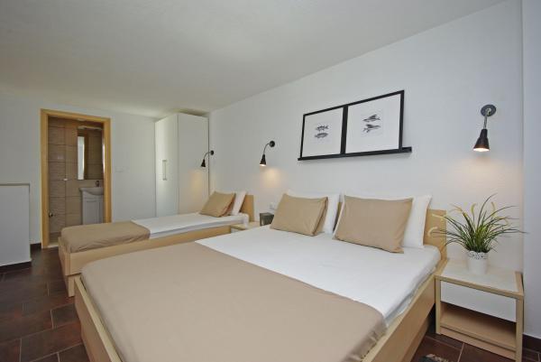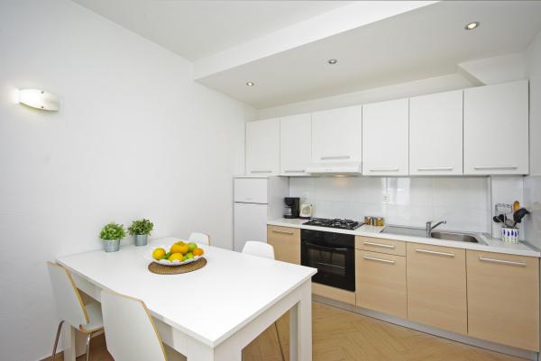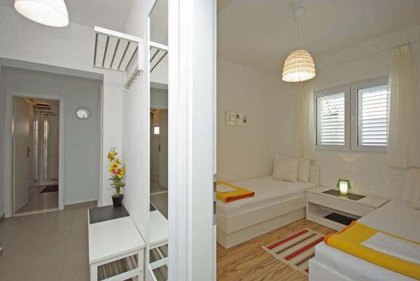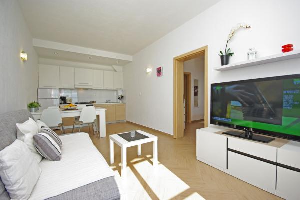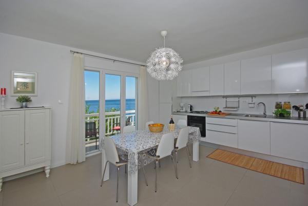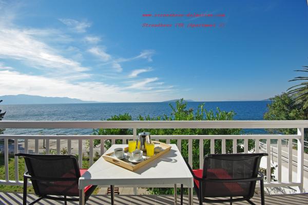 Apartments in strandhaus-dalmatien are located in a great location, only 5 meters from the sea and the beach. Completely and modernly equipped in the first row to the sea and in a quiet environment. All apartments have a beautiful sea view, and there are 3 restaurants nearby. You can see more pictures on our personal page. Type in google: strandhaus-dalmatien and you will find our personal website. The facility is located 5 minutes walk to the center. Secured parking. We look forward to your inquiry!