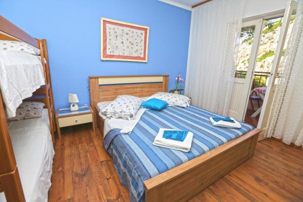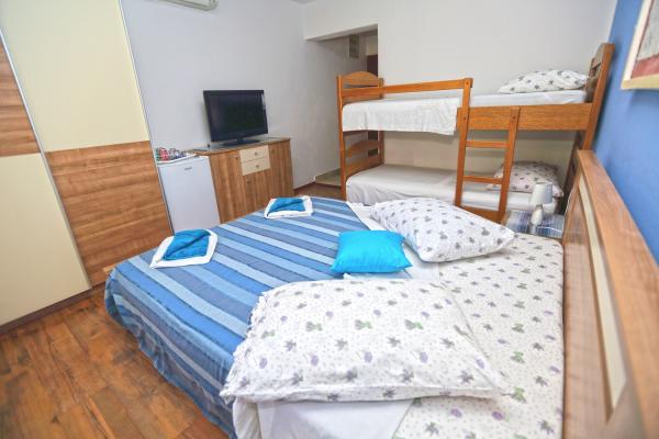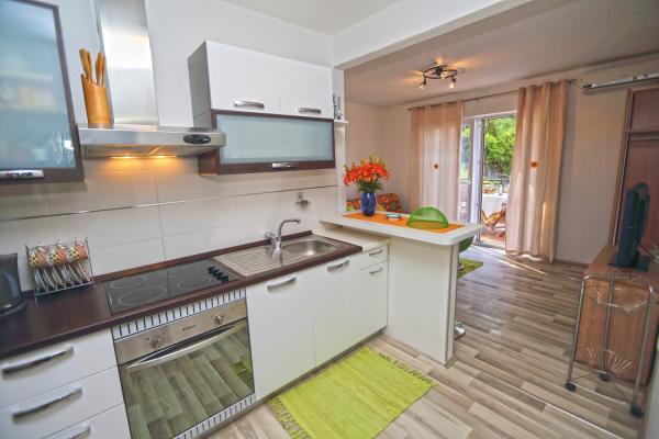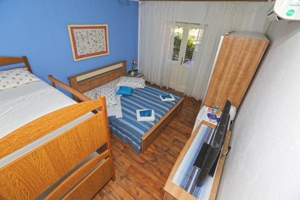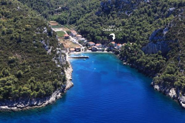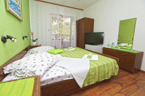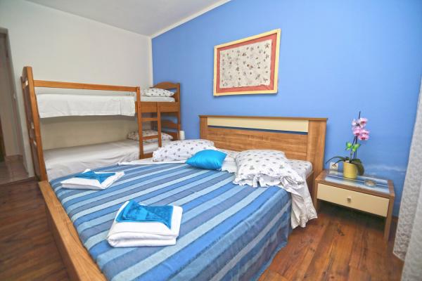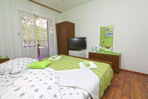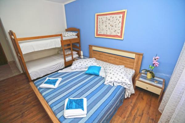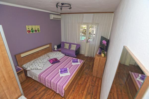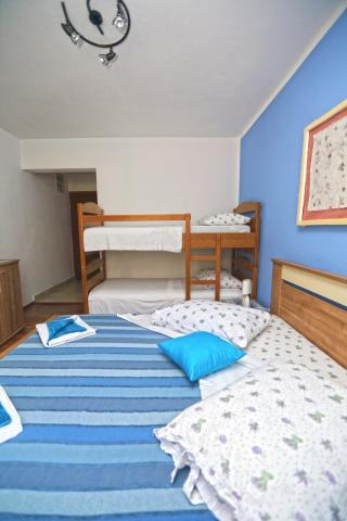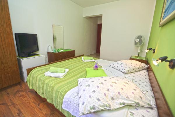 The house is situated by the sea. The facility consists of three rooms with a toilet. Each room has the option of a third bed. Luxuriously furnished apartment with capacity 2 plus 2. The apartment consists of a kitchen, living room, bedroom, 2 bathrooms, terrace with sea view. Since the apartment and rooms are located on the same floor there is the possibility of combining the larger group. Maximum 8 adults and 4 children. The apartments are located on the second floor of a private house. The beach is 10 meters, as well as to the restaurant. Apartment and two rooms are air-conditioned, one bedroom has a ceiling fan. We have running water and electricity. We are located on the north side of the island in the middle of the island. The facility is surrounded by pine trees. In our second house which is located just 20m has a half board. In our kitchen we use only local products, vegetables, honey, wine and other products from our family farm. Come visit us and we will try to spend a pleasant holiday.