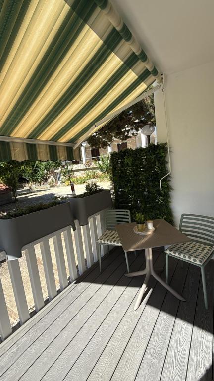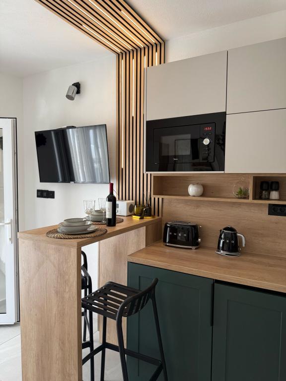 Peace, quiet, no crowds. The atmosphere is complemented by a view of the sea, the sound of the sea and you are two jumps to the beach. The apartment is neat, equipped with everything you need for a pleasant holiday. The owner is cheerful and unobtrusive, and yet always available. Suffice it to say that we never spend our summers in the same place, but we will make an exception.