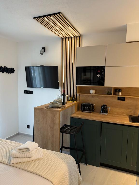 Beautiful bay, clear sea, no crowds on the beach. The apartment owners are pleasant and approachable. The apartment is well equipped. We enjoyed the view from the terrace. I recommend it to everyone who wants peace and rest.