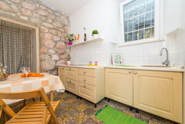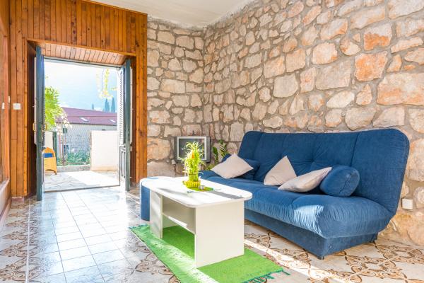 Holiday house consists of a living room, kitchen and bathroom on the ground floor, and upstairs are two bedrooms and a bathroom that can be reached by stone steps on the outside of the house. The house is a terrace covered with grape vines. The house is located in Zaton Mali, which is located 8 km west of Dubrovnik. Holidays in Mali Zaton is ideal for guests who want a peaceful vacation, at the same time you can enjoy the beauty of Dubrovnik. From Mali Zaton you can easily organize day trips to nearby islands. We want the guests take care of the house as if it were theirs and to feel comfortable and enjoy your holiday to be nice to them to want to come back. Guests can use in the home, and included in the price, air conditioning, local tax, washing machine, TV, bed linen, towels, toilet paper, paper towels, etc...
