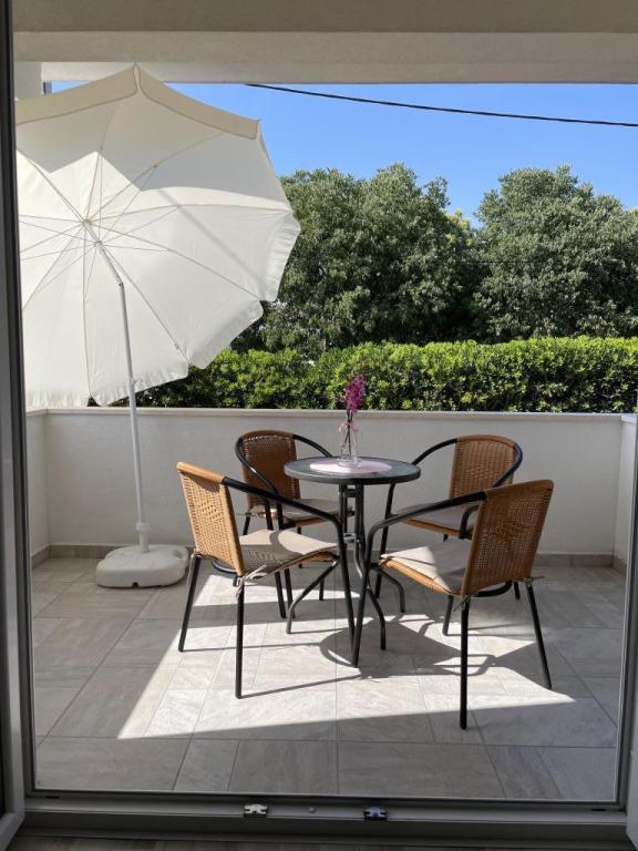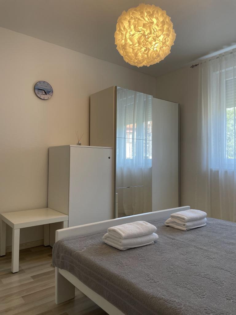 First of all, I would recommend this apartment to anyone who is in doubt! The owner greeted us with a smile and warm words of welcome, she is very kind and accommodating, we were greeted by a clean and nicely decorated apartment, on the table there was a bowl of fruit, cookies, coffee and wine, a fridge full of groceries (water, milk, juices, beer), and in the kitchen there were cereals, Nutella, coffee, tea, honey, various spices, etc., WiFi and Netflix are available. Behind the apartment they have a large enough seating area and a barbecue, which you can use if you want, and you also get your own parking space. The apartment is located about 15 minutes on foot or about 2 minutes by car from the beach which has fine sand and the sea is shallow. We felt at home and hope to come back again next year.