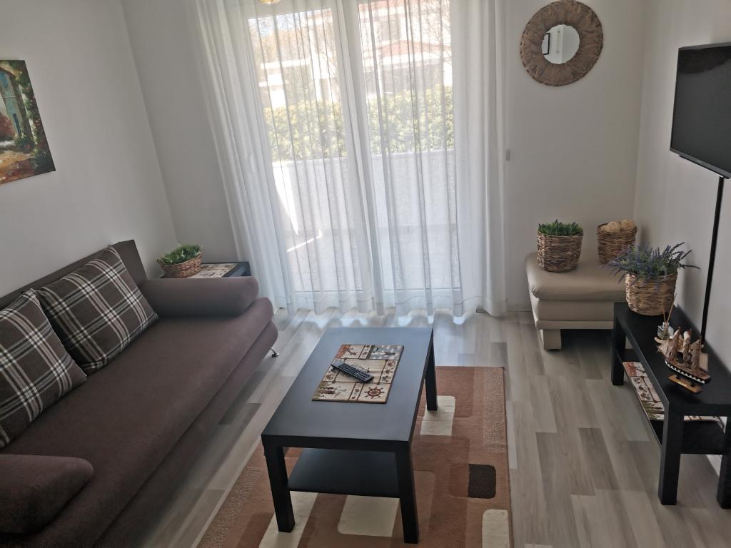 Everything we had read so far in the comments about the apartment was true! Apartment was completely new and very clean! Parking is provided in the yard of the house, nearby restaurant and general store about 50 meters..10 minutes on foot to the beautiful beach....children's playground 20 meters, apartment fully furnished. There is a large table + grill in the yard. Thank you very much for everything, I will come back next year.