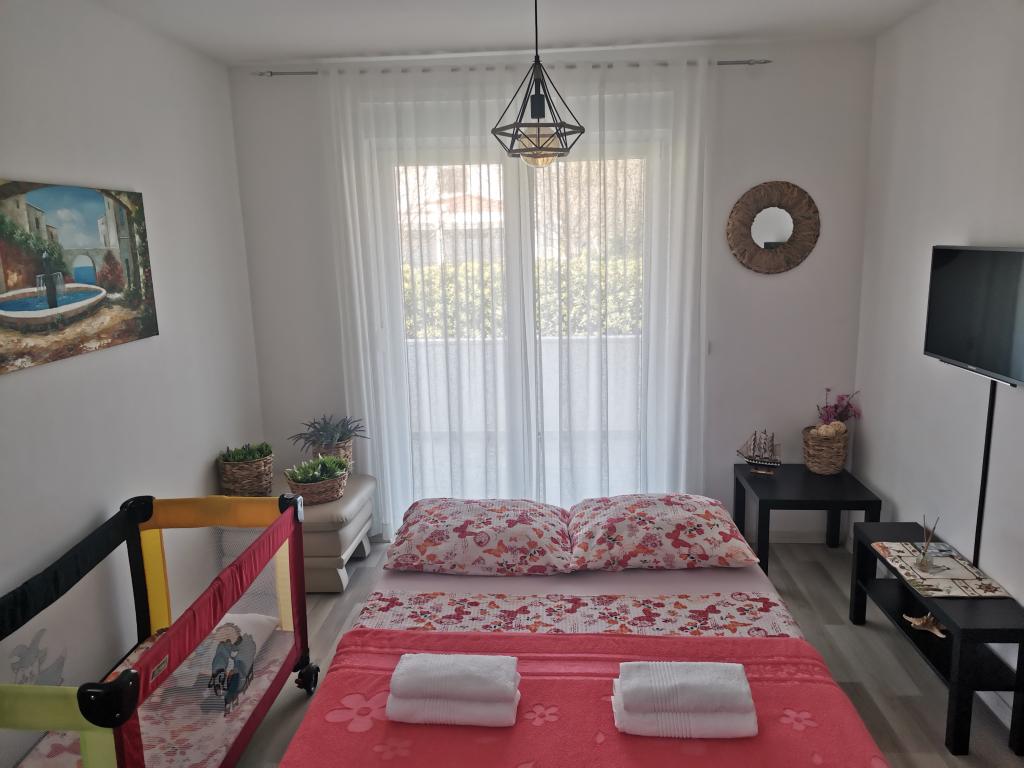 First of all, we were welcomed very nicely by the owner who is more than polite! The children were greeted with surprise gifts, in the fridge for the first time after the trip we had juices, water, beer and milk. A bowl full of fruit was prepared, a coffee machine and capsules, a bottle of wine, 2 jars of Nutella, cereals, spices and cooking oil, an air fryer and basically a fully equipped kitchen with everything you need. You have WiFi and Netflix available on the TV. The use of the air conditioning is not charged extra like some other facilities do. The apartment is new, nicely decorated, you have a small yard behind for playing and a place to sit and grill if you want, you also get your own parking space. The apartment is located about 15 minutes on foot from the beach which is great for children because the sand is fine and the sea is shallow so they can be independent regardless of age, or about 2 minutes by car if you decide to go to the beach in Zaton like we did. In short, all recommendations, we will definitely be back next year.