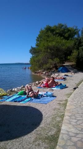 I am renting a newly renovated and very nice apartment in Zaton. It is located on the first floor of a family house, and consists of three bedrooms, a kitchen, a living room, a bathroom and a nice terrace. The sandy beach is located right behind the house, approx. 100m, everything is ideal for families with small children due to the proximity and shallow sea. The price includes tourist tax, Wi-Fi, air conditioning, a parking space in the yard of the house, and the use of an outdoor shower and barbecue. If you want to go to the well-known tourist resort of Zaton, you can do so along the well-maintained promenade along the sea with rollerblades, by bike or by walking in 15 minutes. In the immediate vicinity are Nin, Vir and Zadar. The place is beautiful and peaceful, so your vacation is guaranteed. The price of a night in the pre-season, season and post-season can be found on the Price list option.