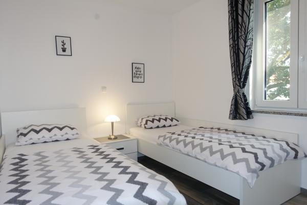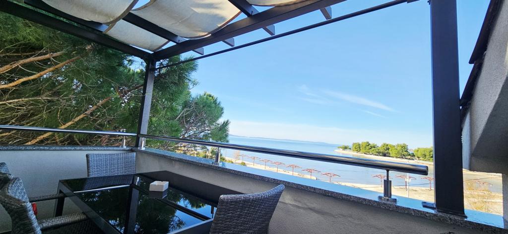 Nearby: - Tourist resort \\Zaton\\ - 60 m - Children's playground - 20 m - Coffee bar - 20 m - Restaurant with half-board meals - 30 m - Bakery - 40 m - Kiosks with beach amenities - 40 m - Outdoor gym - 40 m - Zadar - 12 km - Nin - 1 km The beach has showers, changing rooms and toilets. It is possible to rent deck chairs, umbrellas, pedal boats and other amenities on the beach. Within a radius of 100 km there are national parks: Paklenica, Kornati, Plitvice Lakes, Krka and Northern Velebit.