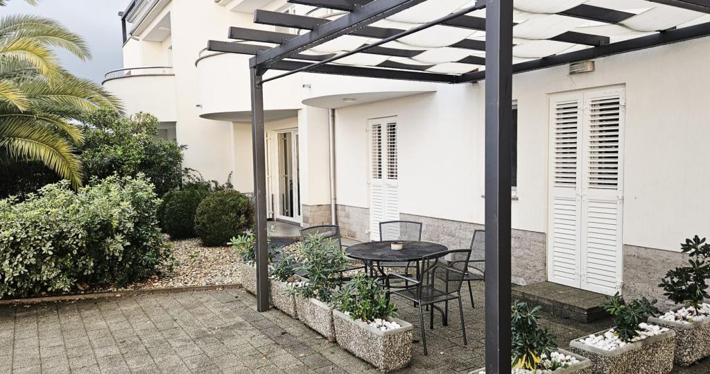 Nearby: - Tourist resort \\Zaton\\ - 60 m - Children's playground - 20 m - Coffee bar - 20 m - Restaurant with half-board meals - 30 m - Bakery - 40 m - Kiosks with beach amenities - 40 m - Outdoor gym - 40 m - Zadar - 12 km - Nin - 1 km The beach has showers, changing rooms and toilets. It is possible to rent deck chairs, umbrellas, pedal boats and other amenities on the beach. Within a radius of 100 km there are national parks: Paklenica, Kornati, Plitvice Lakes, Krka and Northern Velebit.