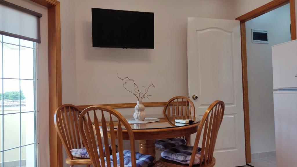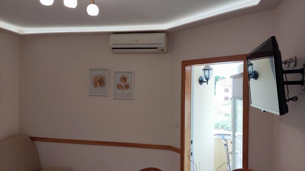 We were accommodated in a 2+1 room. The apartment was clean and fragrant. The sea directly across the road. The view directly to the sea and the sunset... the only thing that was a little minus is the lack of storage space for three people, but it can be managed. And the water was terribly difficult to adjust - either iced or hot, but those are really just little things. The owner was accommodating. Upon request, she also gave us additional towels without extra charge or any other words. .There is also a resort nearby, which offers restaurant stands, etc. in the evening. I really recommend