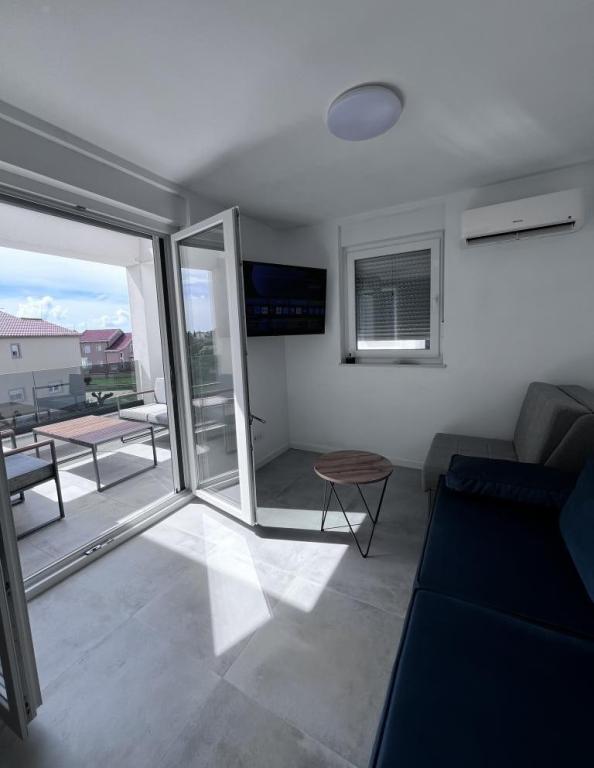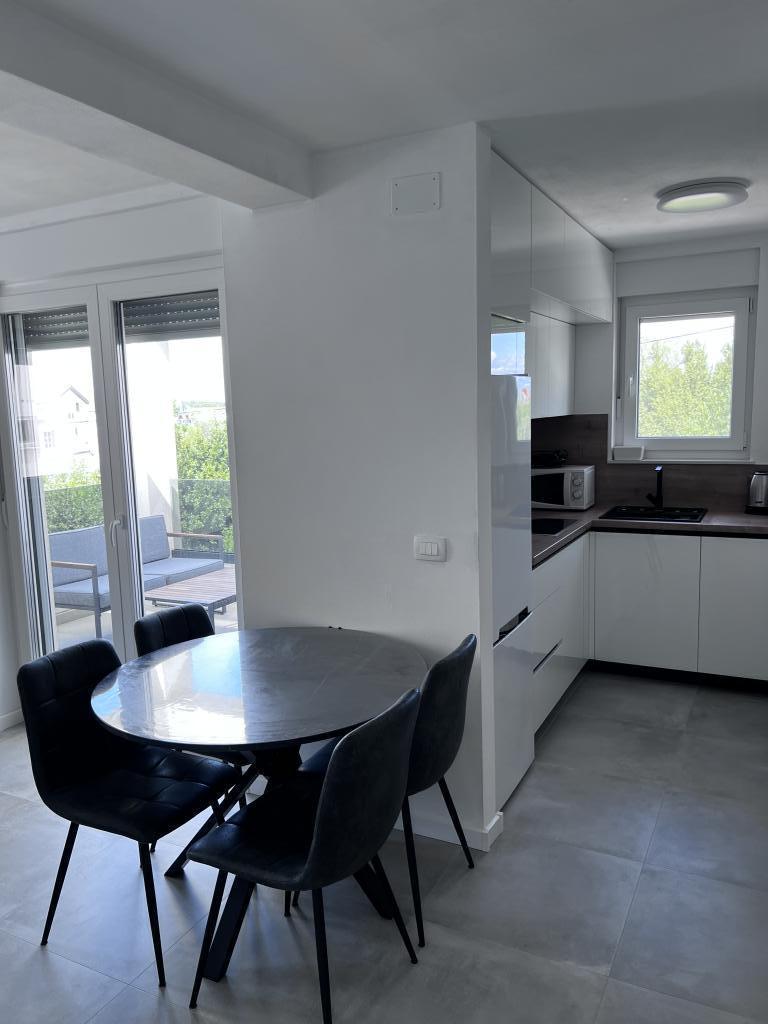The apartment is new and everything is great. The kitchen has everything you need. In the fridge we were greeted by cold apple juice, beer and water. In the kitchen there was coffee and sweets for adults and children. The owners are very kind and everything you needed, they were there to help. The apartment is very close to the sea. There is also parking. They even have an umbrella for the beach. It is very quiet and very pleasant to sit and enjoy nature.