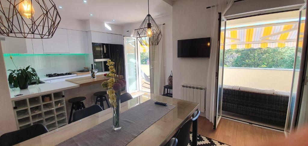I highly recommend! very gracious and helpful owners (a young family) - immediately feels that the guest car for them truly beautiful, groomed garden with swimming pool and children's playground clean and cozy apartment with a large balcony The only drawback, distance to the beach, has proven to be good, because we are not "hanging" on only one beach, but we feel the beauty of Zatonskih and nearby beaches.
