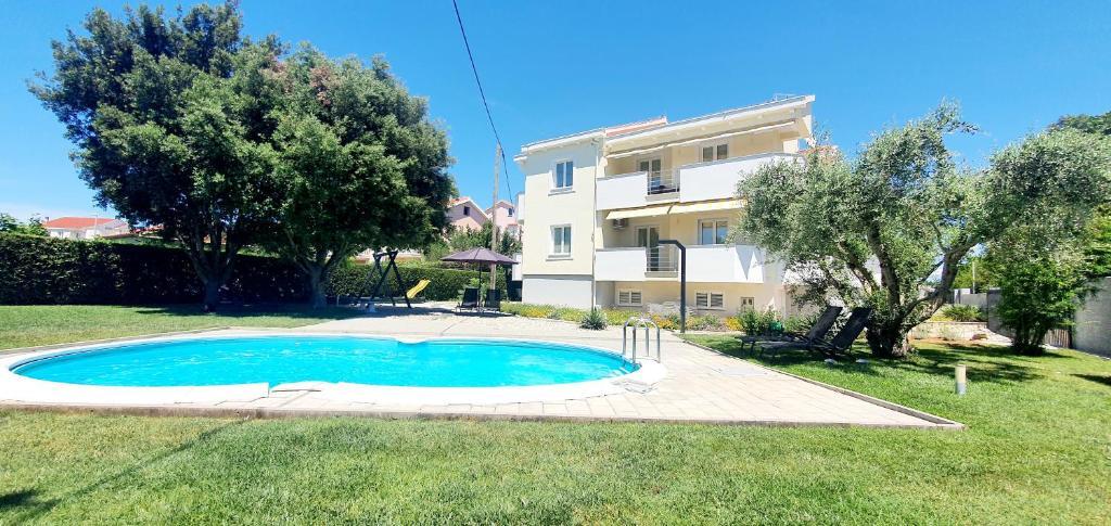 The multi-apartment house is located in the touristic town of Zaton, between the beautiful city of Zadar and the historic town of Nin. The spacious fenced yard is ideal for family vacations and relaxation. A tourist village with a rich offer of facilities for children is 1.5 km away. The apartments are fully equipped with a swimming pool, a garden, facilities for children and a secured parking space.