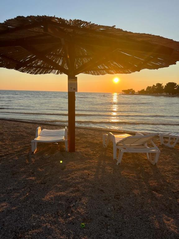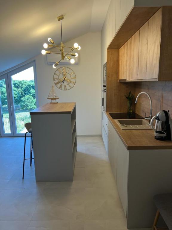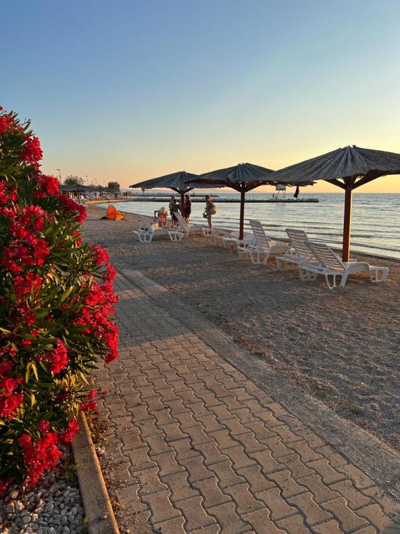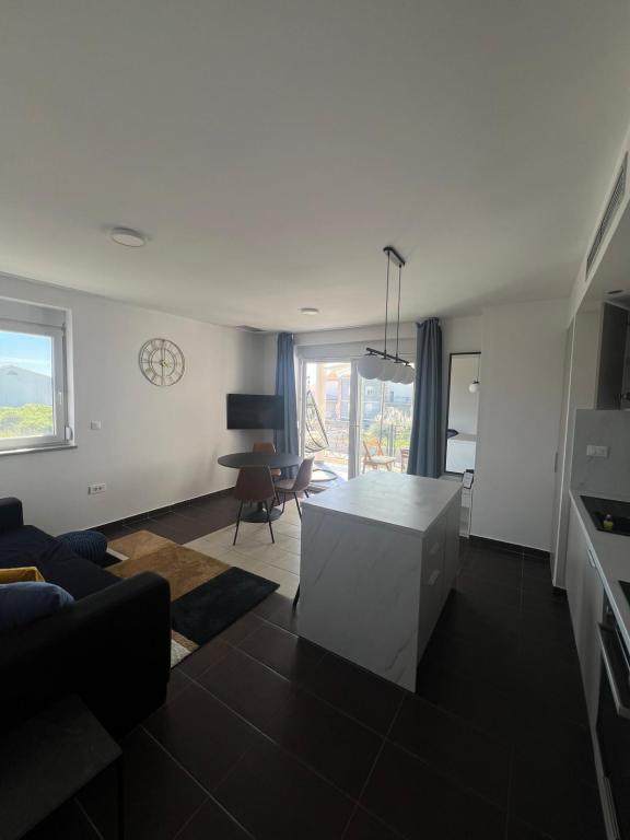 Vitas Apartments are located next to the city beach Jaz, which stretches along the entire promenade in Zaton. They are equipped with new and modern furniture. Zaton is the right place for an unforgettable family vacation. Beaches for the youngest with small coves, shallows and endless games in the sand. And for older deeper parts of the beach, a place to sunbathe or read a good book in the shade of an umbrella. The beach in Zaton has a blue flag, which is an award for the cleanliness and clarity of the sea. There are umbrellas and sunbeds on the beach, as well as showers, and by the beach itself there are several cafes, restaurants and a children's park. This apartment with a view of the sea and the garden offers guests free WiFi. The apartment contains family rooms. All units at this apartment complex are fitted with air conditioning, a seating area, a flat-screen TV with cable channels, a kitchen, a dining area and a private bathroom with a hairdryer, a shower and free toiletries. A dishwasher, oven and microwave are also available.