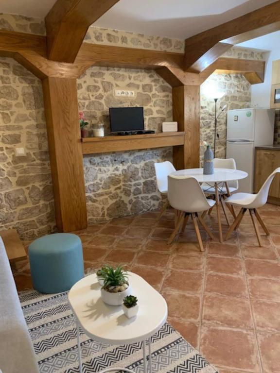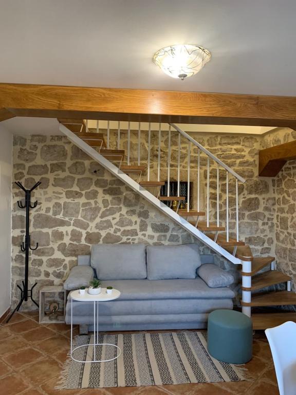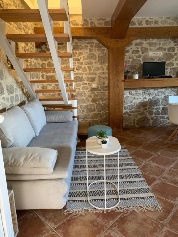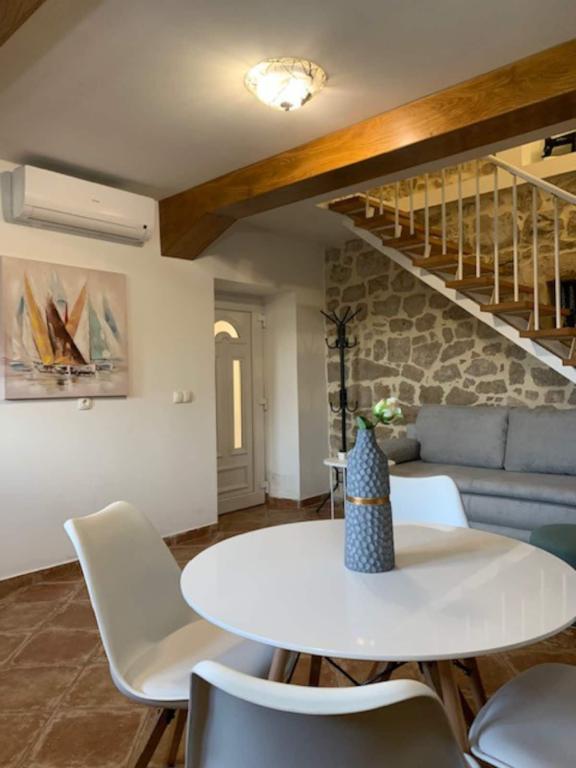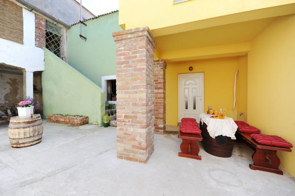 The house is situated in the old part of the tourist village Zaton. It is located 300 meters from the sea. Two Floors, two bedrooms and a sofa bed for to people, it can fit six people. It is surrounded by a large old-fashioned court.