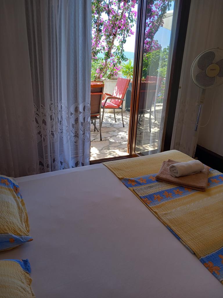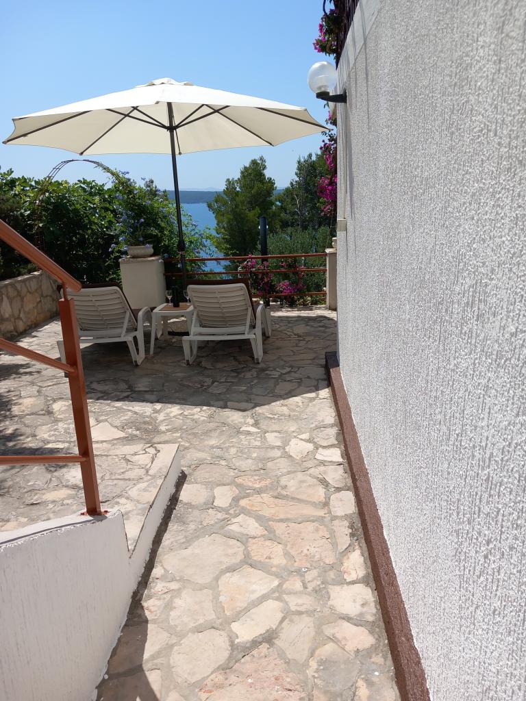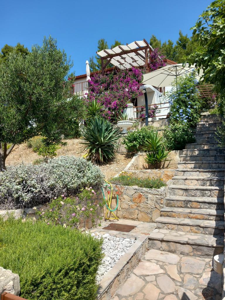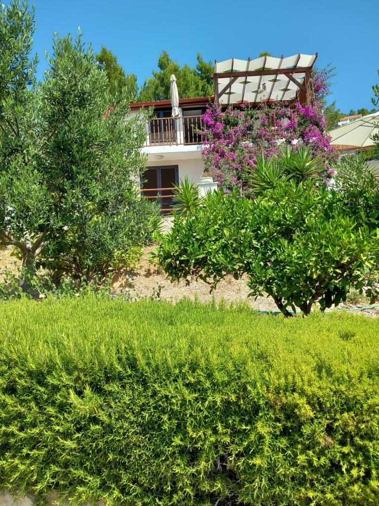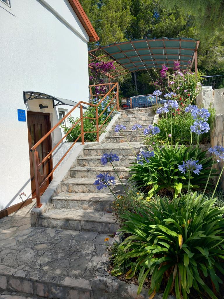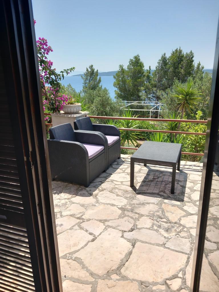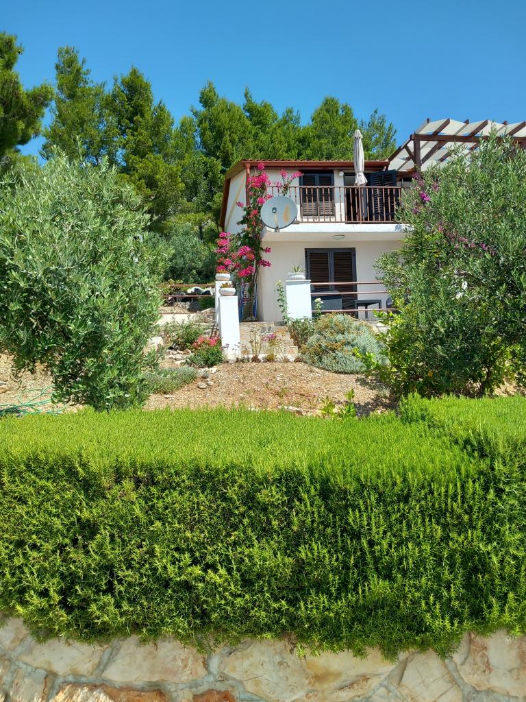 We rent only one fully equipped apartment on a separate floor of a family villa, which is 130 meters from the sea (air conditioning, wi-fi, satellite TV, washing machine, microwave oven, coffee machine), which means that you are the only guests and have full privacy. The apartment consists of two bedrooms with double beds, a kitchen with a living room (sofa bed), bathroom, hallway and a large terrace with a beautiful view of the open sea, the island of Šćedro, Korcula and the Pelješac peninsula, surrounded by a garden full of various Mediterranean plants. Parking is in the fenced yard. Barbecue on the terrace. There is an outdoor solar shower in the yard. Beaches, restaurants, bakery, children's playground at a distance of up to 250m.