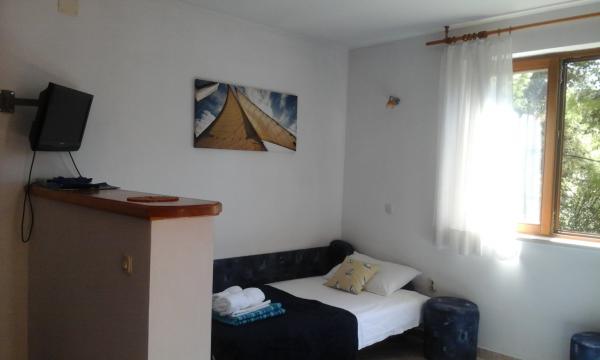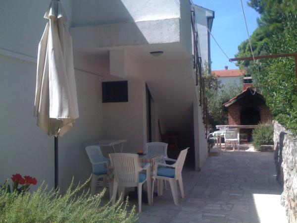 The house is in a quiet street without traffic, surrounded by pine trees. We have three apartments with separate entrances. Apartments (4 1) and (2 1) - studios have their own part of the yard with grill. Apartment (2 + 2) has a covered balcony. Each apartment has a parking space, the nearest beach is about 100 m away. Next to the beach there is a cocktail bar and a restaurant. It is best to dine outdoors, watch the sky full of stars, enjoy the silence and the scent of Mediterranean herbs. In our house, the couples wanting a peaceful vacation and families with children will feel most comfortable.