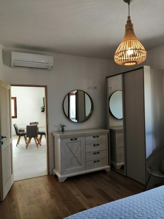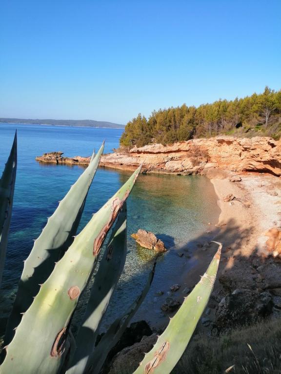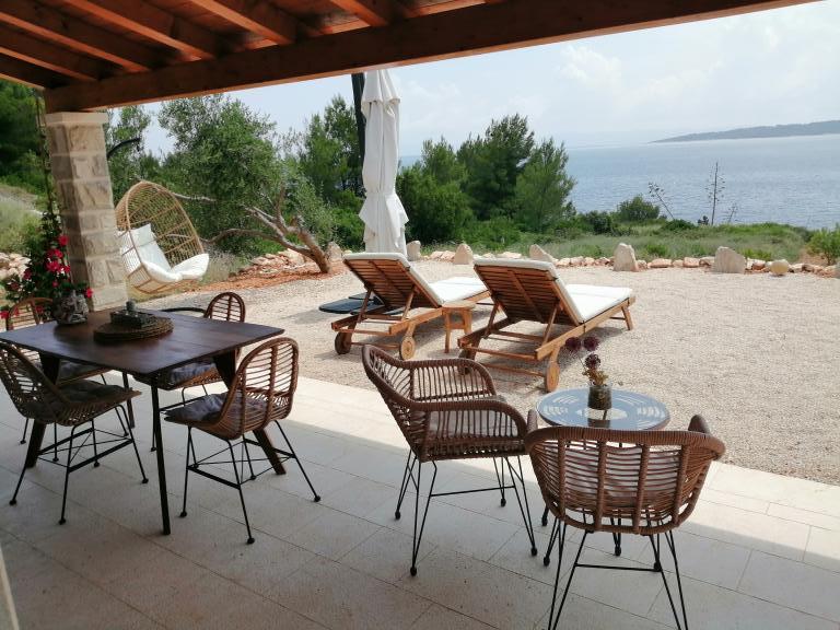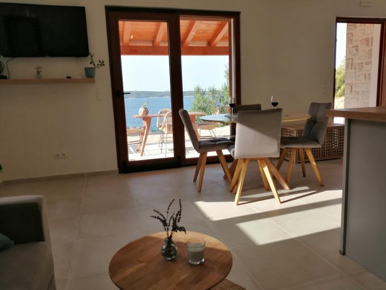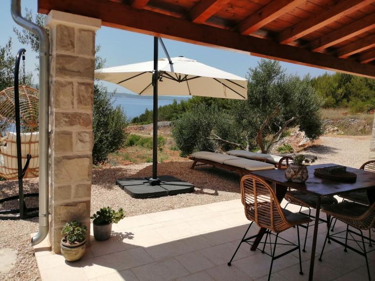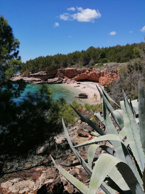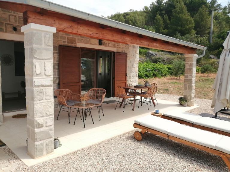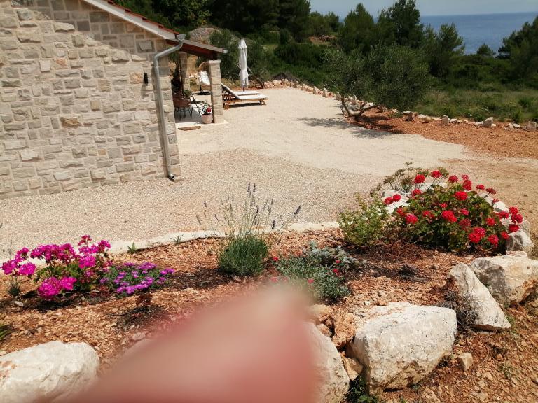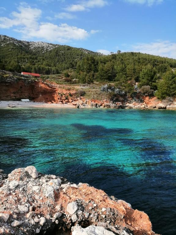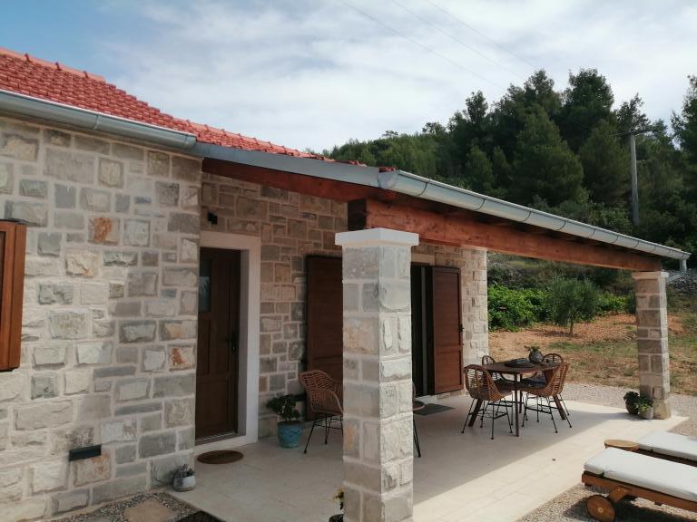 House Gnjila is located 50 m above the beautiful beach in the bay between Gromin Dolac and Zavala. The house is new and fully equipped. It consists of a spacious room with its own bathroom, an additional bathroom with a washing machine, a living room, a fully equipped kitchen with a dishwasher, a dining room, a large terrace with a seating area, deckchairs, a barbecue, and parking. The space is air-conditioned and provides WI FI. Private road to the beach. The house is the only one in the bay. It is an amazing place for a peaceful vacation. It is suitable for 2-4 people. Welcome!