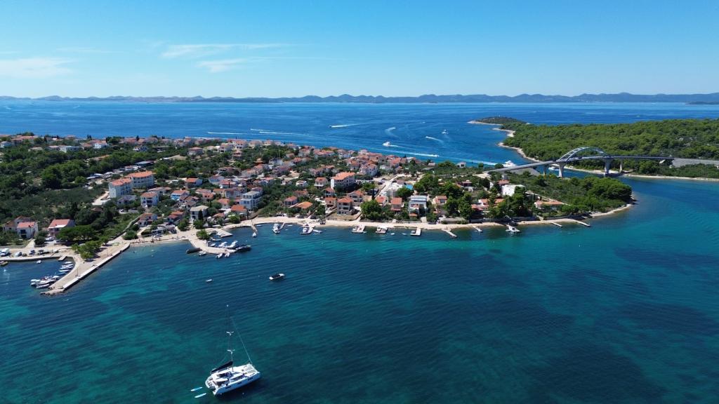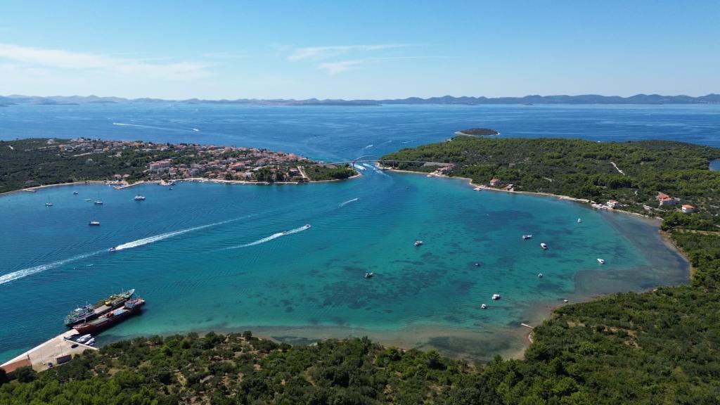 Island of Pašman-Ždrelac (near the bridge), two-room apartment, air conditioning, wifi, large living room with kitchen, terrace, oven, 100 from the beach.