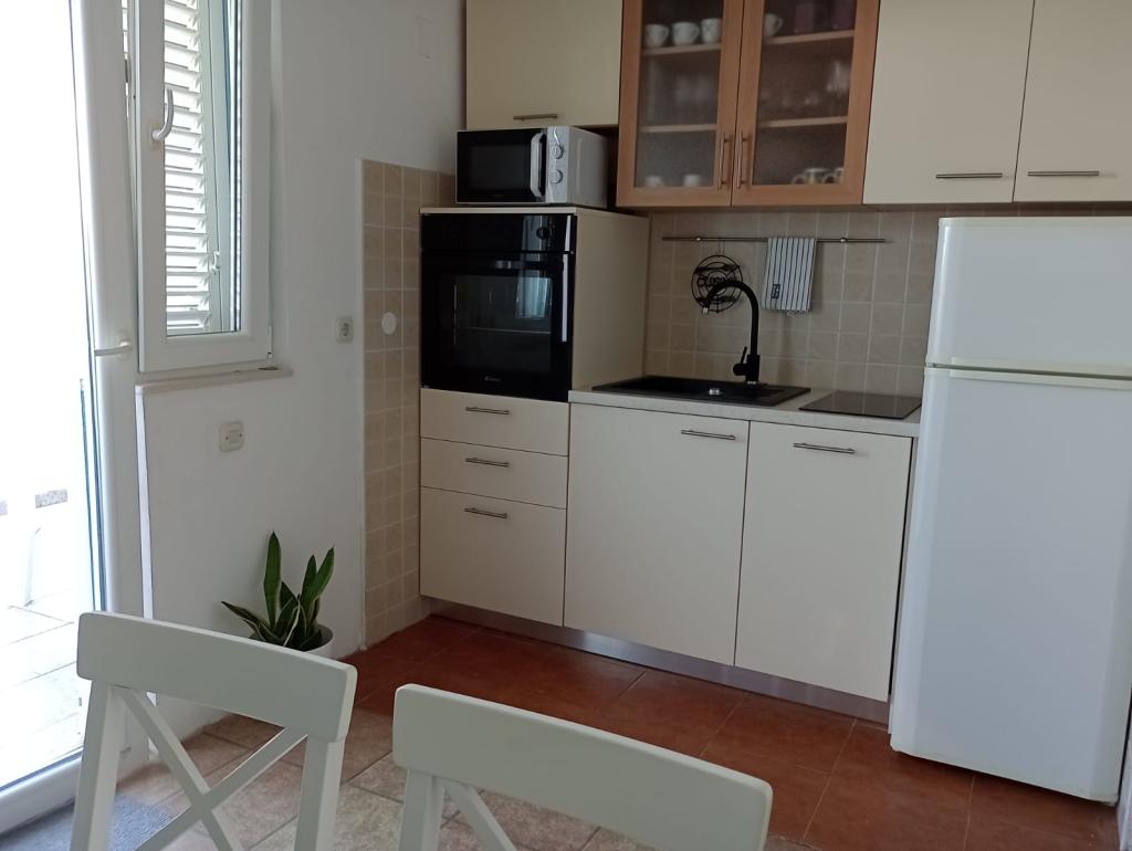 Neat and spacious apartment, the terrace has a view of the sea, the yard is large and full of greenery. The shop is right next to the house, as well as the beach, which is a minute's walk away, the beach is pebble, has natural shade, benches to sit on, swings for children... The owners are wonderful people! My family and I recommend Moreta apartments to everyone who wants to rest, relax and enjoy the sea!