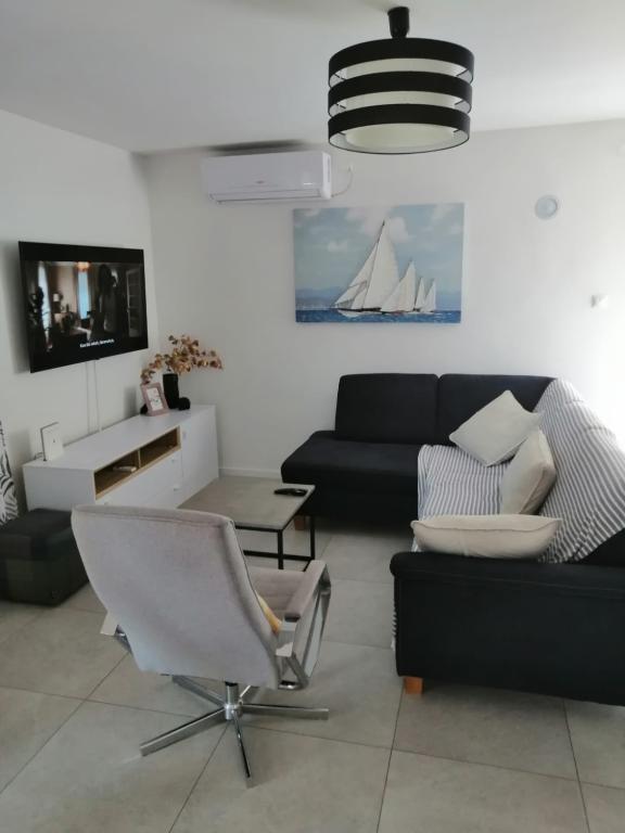 Holiday house Marie is located in Tratinska bay. The house consists of 2 bedrooms, a bathroom, a large living room and kitchen, and a large terrace (40 m2). It has one double bed and 2 single beds, and a three-seater that accommodates 2 people. You can arrange things in wardrobes or bedside tables. The kitchen is equipped with everything you need to make a great lunch, breakfast or snack, and the living room has a large TV for evening entertainment (if you don't decide to walk around the bay). The house is located in the first row to the sea, the walk to the beach takes only a few minutes. The apartment has a garden by the sea, approx. 800m2. There is a grill/oven and a fig tree that bears fruit throughout July and August. There are 2 restaurants next to the house, one 100m away and the other 200m away. In the late afternoon, you can head to the top of the bay, where there is a viewpoint with a view of the Kornate National Park, or explore the neighboring Mikavica, or go to the village along the old road.