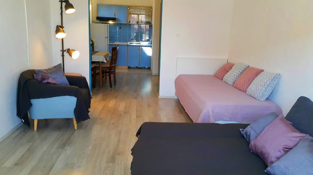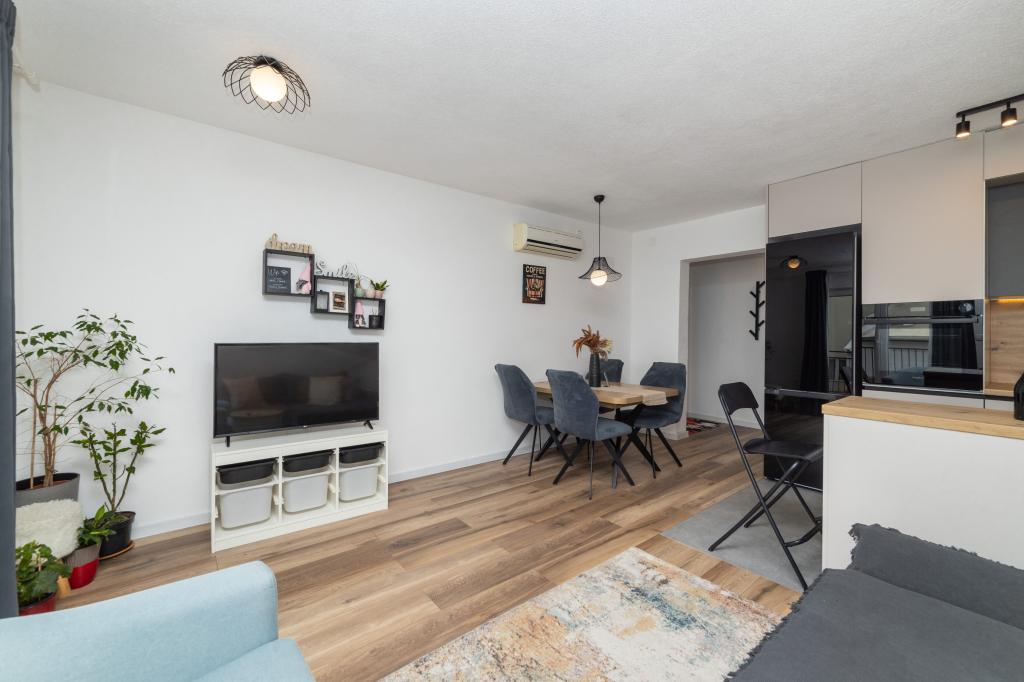 We lived in a 2+2 apartment, separate rooms, kitchenette. Everywhere clean and equipment in good condition, no old furniture, etc. The price is good in my opinion, without any additional fees for air conditioning, dog, etc.... Nightlife only on the beach, complete peace around the apartment, we were surprised. We didn't see the owners much, just the handover at the beginning and then at the end, we drove around a lot, enjoying it. Pebble beaches advantageous in that the sea is really crystal clear. If I should ever be back in the area I know where to go and I don't think I would look anywhere else if it was available. Since there is no such thing as perfection, I would like to make a small note. The pan on the induction cooker was a little difficult to heat up, it was probably not built directly for induction, but something could be done about it, it just took a little time, the rest of the dishes were fine.