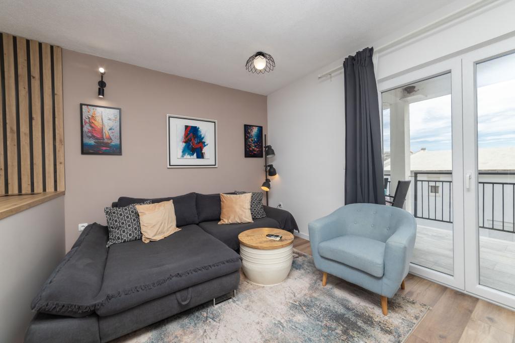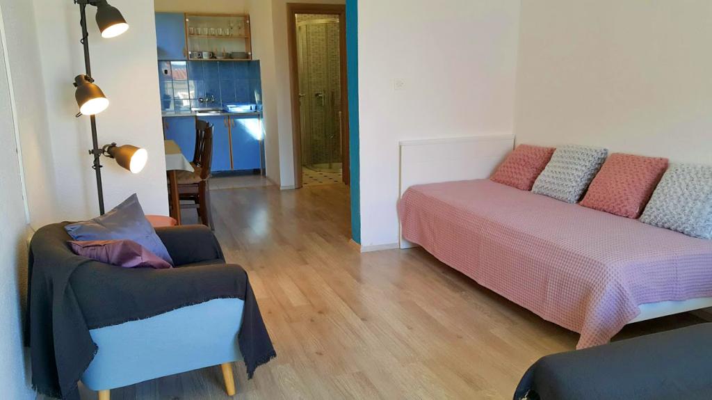 Wonderful stay in the apartment. Two adults and two children had everything we needed for our vacation. The apartment was clean and spacious enough. Maybe the balcony lacks an awning or parasol, as it is not possible to sit on the balcony in the afternoon. The owners are very friendly, the children are very welcome. The apartment is in a quiet and beautiful town. We would be happy to come back again. LP The Pučnik family