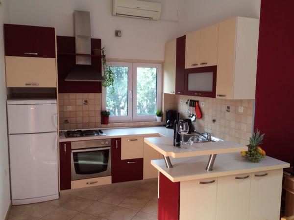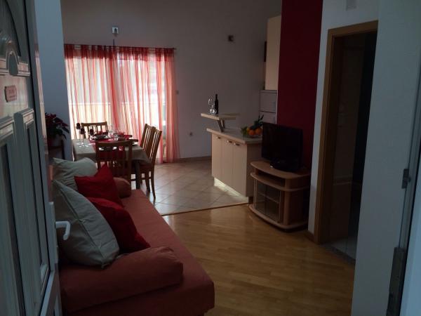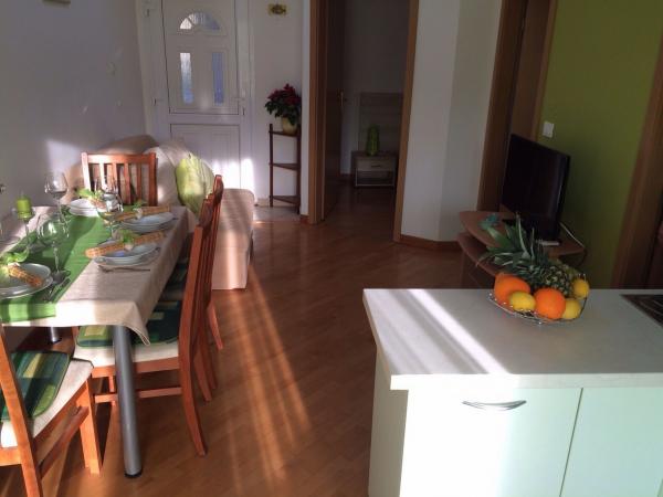 The apartments are located in Žman on Dugi Otok in the Zadar archipelago. Apartments Hrboka consist of 2 apartments that can accommodate a total of 8 people. Apartment Kovač with two bedrooms offers comfort for 4 people, and apartment Skrpina offers comfort for 2 people in the bedroom plus 2 people on an extra bed in the living room. The apartments are equipped with complete bedding, dishes, kettle, coffee maker, TV, wi-fi. Parking is provided for guests. The apartments are located approximately 70 m from the sea, 100 m from the shop, post office and clinic and 150 m from the beach. Maximarket Tommy (food, household items), pharmacy, ATMs (ATM, ERSTE, PRIVREDNA BANKA) and post office are located in Sali, which is approximately 9 km away. The ferry port is approximately 20 km away and is located in Brbinj. In Žman there is a restaurant and tavern where you can eat, as well as a cafe bar above the beach.