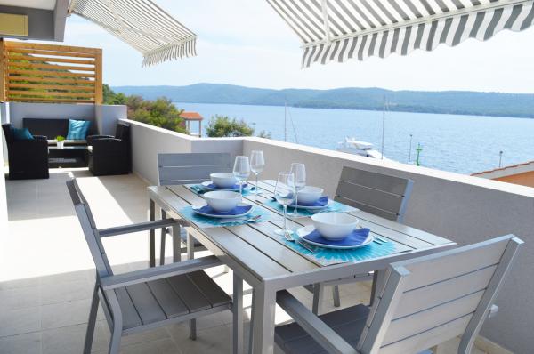 Apartments are located on the island of Zverinac, a perfect place for a complete runaway from the city noise. In true Mediterranean landscape, you will feel the magic of nature by overlooking the olive trees, pines and the clear Adriatic Sea you are surrounded by. It is ideal for families with children and for people who like solitude and nature. We hope that you will choose to spend a relaxing vacation in our apartments, situated on only 50 meters from the sea and the closest beach. The apartments have a terrace/balcony with a sea view, a nice living room and fully functional kitchen, two bedrooms (one with two single beds and the other one with a double bed) and two bathrooms (one of them has also a washing machine).
