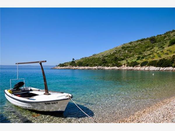 My house is located in San Zirje bay on the eastern side of the island of Brac. In true Mediterranean landscape, you will feel the magic of life in nature. Overlooking the clear Adriatic Sea you are surrounded by olive trees, fig trees and vines whose fruit you can enjoy. The house is energy independent and as such has all it takes to make you feel right at home. It contains two bedrooms, two toilets with one bathroom, kitchen and dining room and living room. On the terrace overlooking the sea, you can enjoy meals that are prepared on the grill. The house can accommodate up to five people. A beautiful pebble beach is located 80 meters from the house and is suitable for enjoying with small children. From Sumartin is only about 20min by fast boat. For your boat, if you have provided a free berth.