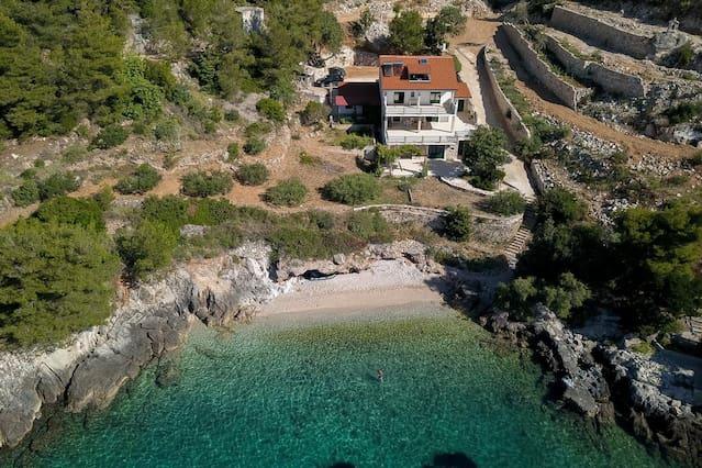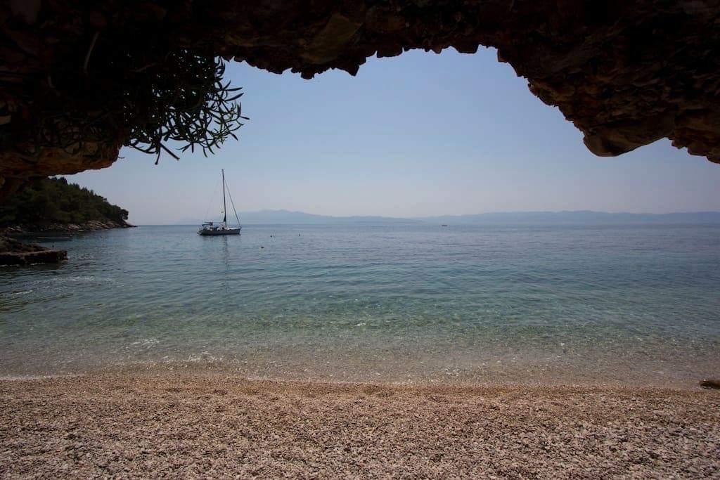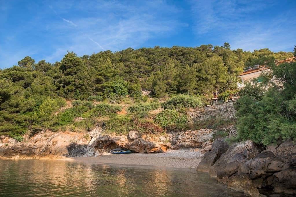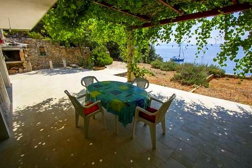 Apartments Tanja are situated in the bay Rapak on the south side of the island. If you really want to relax and enjoy the beautiful surroundings and nature, this is the perfect place for you and for those who want to escape from traffic jams and hectic lives. The house is located in an isolated place, so you can enjoy the peace and privacy. Away from the sea dvadestetak meters. Below the house is a beautiful pebble beach with a cave. The house consists of 5 apartments with 4 beds. There is a possibility of accommodation and additional beds. Each apartment has a terrace overlooking the sea and the islands of Korcula and Peljesac. Parking spaces are provided, behind the house is a large parking lot. The apartment has three fireplaces, 1 indoor and 2 outdoor, grilling is allowed. The building has no electricity, electricity and hot water is obtained through solar energy. (12). In the neighboring bay there is a shop and an excellent restaurant with excellent local specialties.