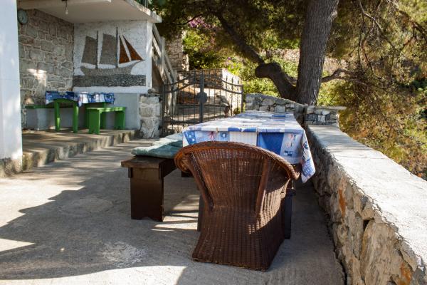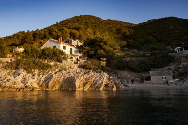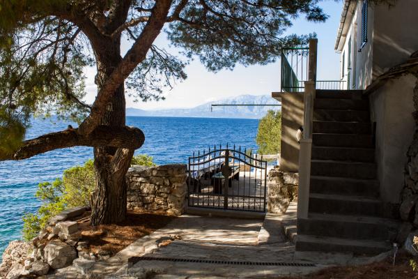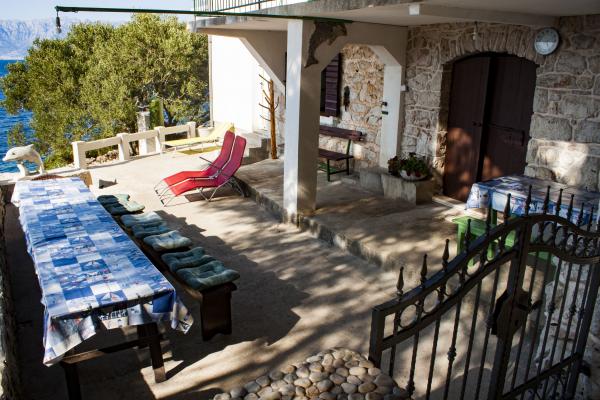 Holiday accommodation in a Robinson Crusoe style, is located in a quiet cove on the north Pakomina side of the island and belongs to the village Gdinj. The house is located just above the clean pebble beaches at 10 m udljenosti, and you have a private waterfront for swimming. The view from the terrace, which has a natural shade of the huge pine is beautiful, you see the sea and the beach and offshore island of Brac and the mountain slope. In the bay there are only three houses, in jednij of them is a family restaurant that offers a great variety of fish and local specialties and you can get to taste food or half board. For accommodation we offer a full house on two floors. On the ground floor is a large terrace with barbecue, cellar, kitchen with gas stove, two refrigerators (one electric and the other gas) and living room (with bed) and bathroom. Upstairs are three bedrooms with seven beds and a bathroom, and access to the terrace. From major cities of the island center are an hour\s drive. We offer internet, included in the price and TV (local channels). Parking space is provided, as well as mooring.