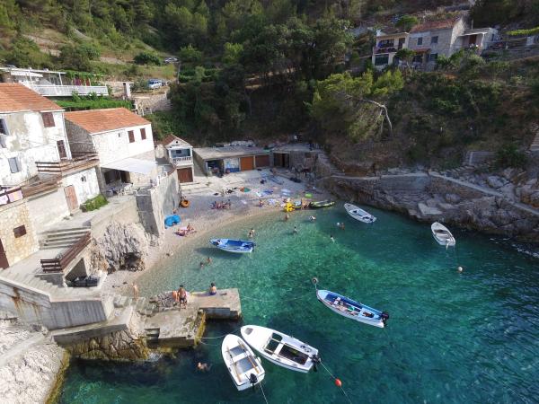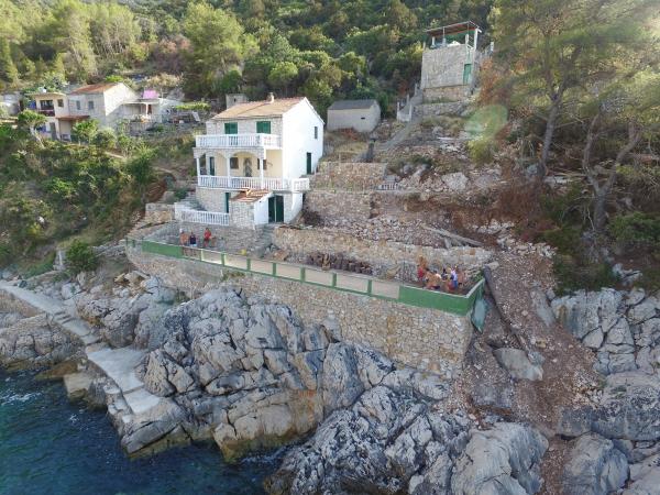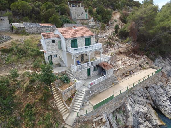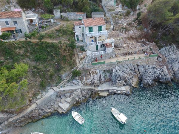 The house is situated in a quiet bay, refuting, 8 km from Gdinj on the sunny island of Hvar. This is an ideal place for vacation, especially for people who want to get away from city crowds and experience the real Robinson Crusoe. Lighting in the home is solar 12 V, there is a possibility of charging cell phones, while the water from the tank. The house is located only 20 m from the sea. It consists of four comfortable bedrooms, 3 bathrooms with toilet, two spacious terraces. From the terrace, with magnificent views of the bay, refuting with a direct view of the sea, islands and Makarska. Guests have the option of parking, barbecue, and playgrounds for God. Ideal for families with small children.