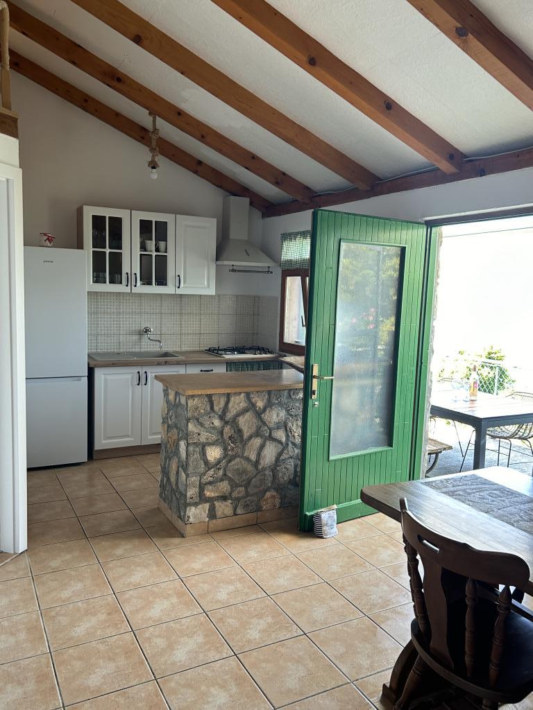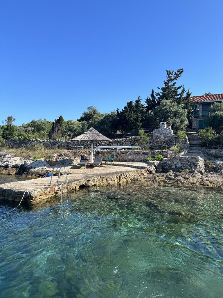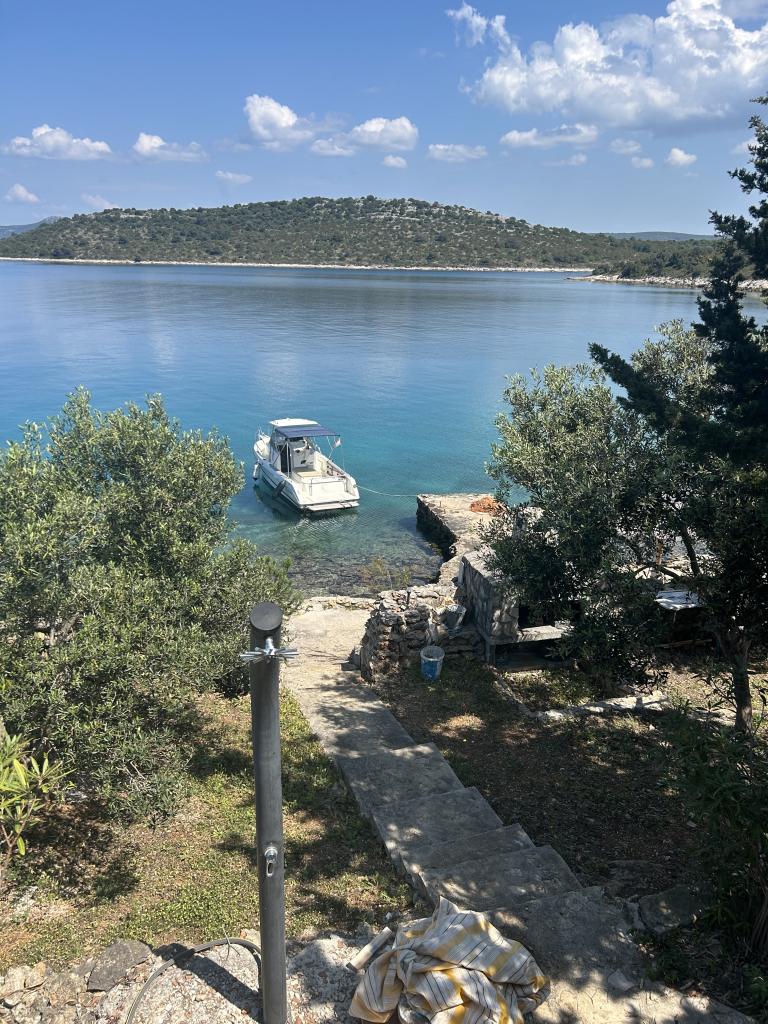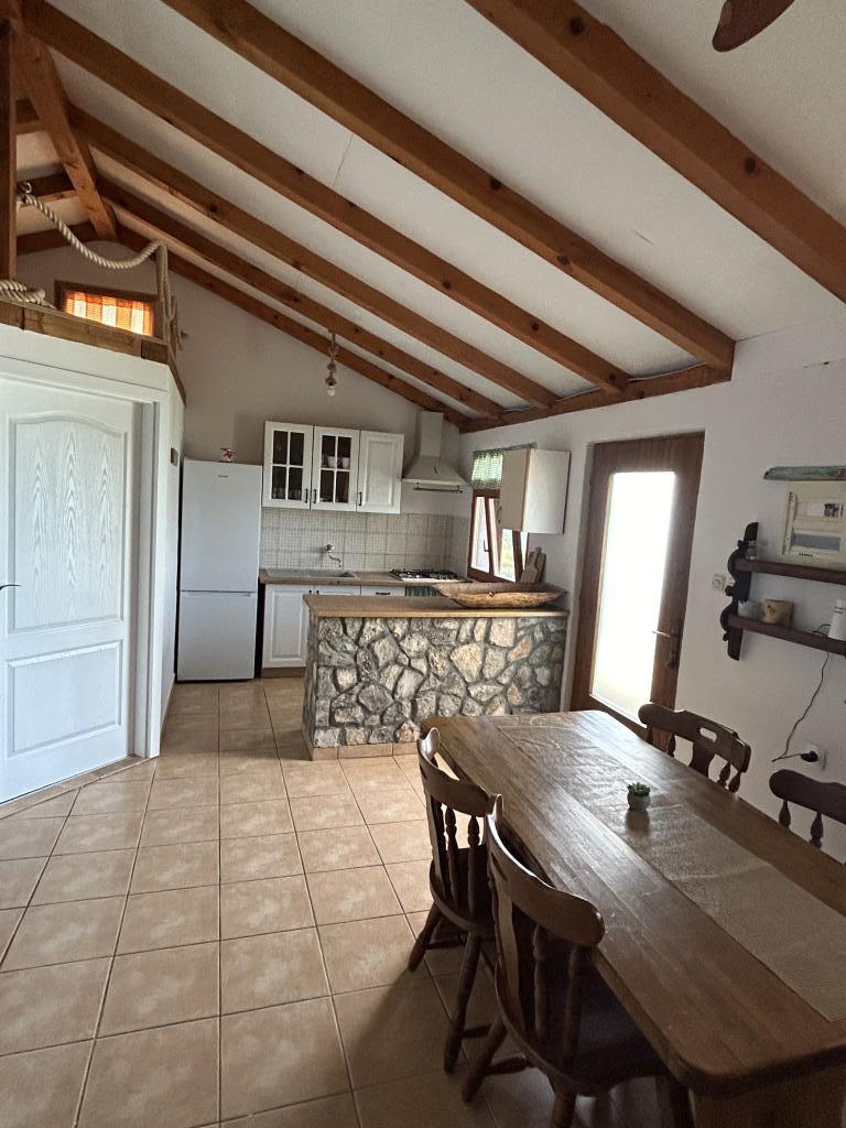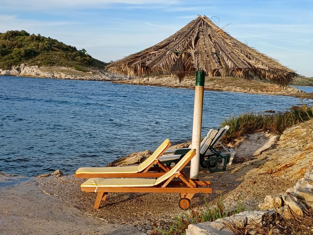 Holiday house Neda is located on the Kornati archipelago, the islet of Brušnjak. The house has 2 bedrooms (double bed), dining room (extra bed), kitchen, bathroom, toilet. In front of the house is a terrace with a beautiful view of the sea. It is located in a secluded place 10 m from the sea, you have your own beach and a boat mooring. The distance to the marina Žut is approximately 30 minutes by small boat where there is a market and a restaurant. The electricity in the house is solar 220V. There is no public transport, departure is from Murter, with our fast boat. Transfer is included in the price of the house. Parking for your car is provided by us and is included in the price.