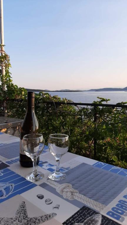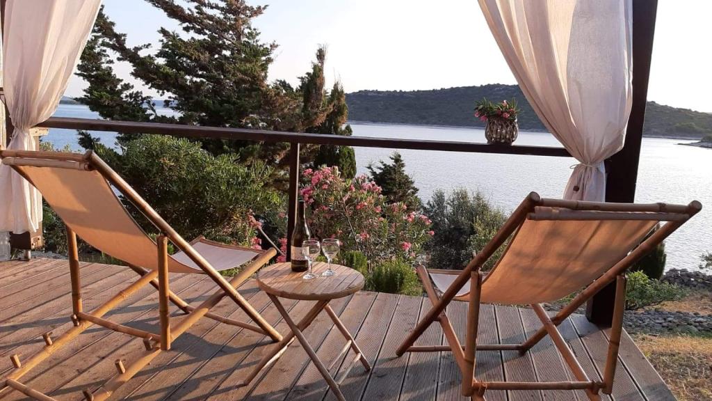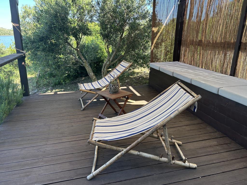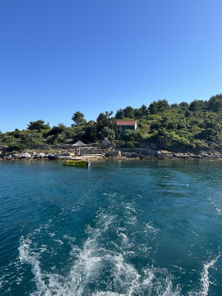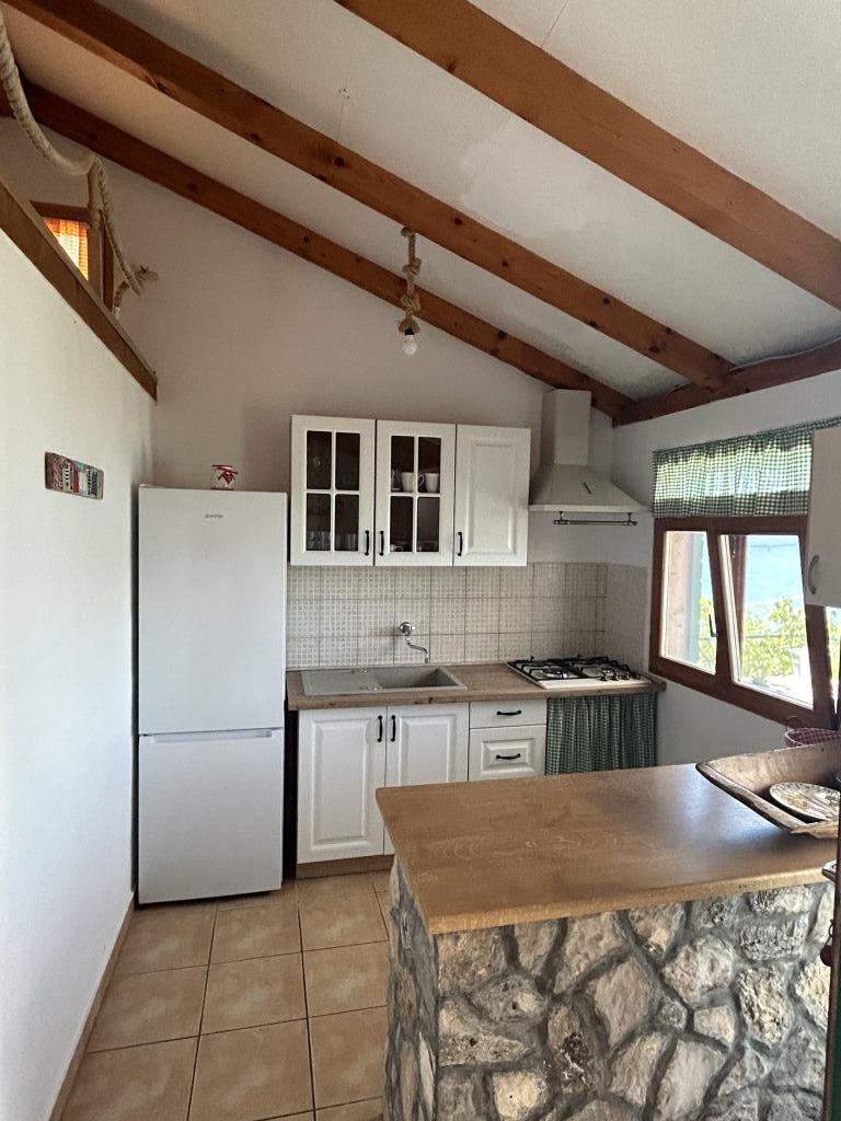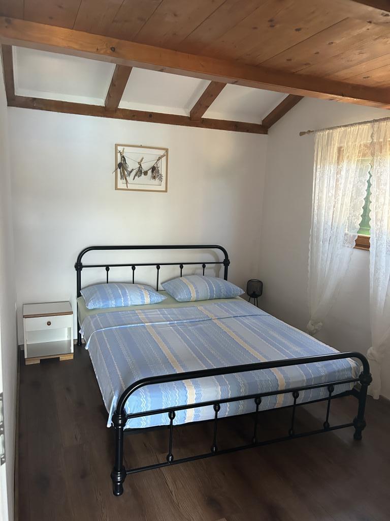 Holiday house Neda is located on the Kornati archipelago, the islet of Brušnjak. The house has 2 bedrooms (double bed), dining room (extra bed), kitchen, bathroom, toilet. In front of the house is a terrace with a beautiful view of the sea. It is located in a secluded place 10 m from the sea, you have your own beach and a boat mooring. The distance to the marina Žut is approximately 30 minutes by small boat where there is a market and a restaurant. The electricity in the house is solar 220V. There is no public transport, departure is from Murter, with our fast boat. Transfer is included in the price of the house. Parking for your car is provided by us and is included in the price.