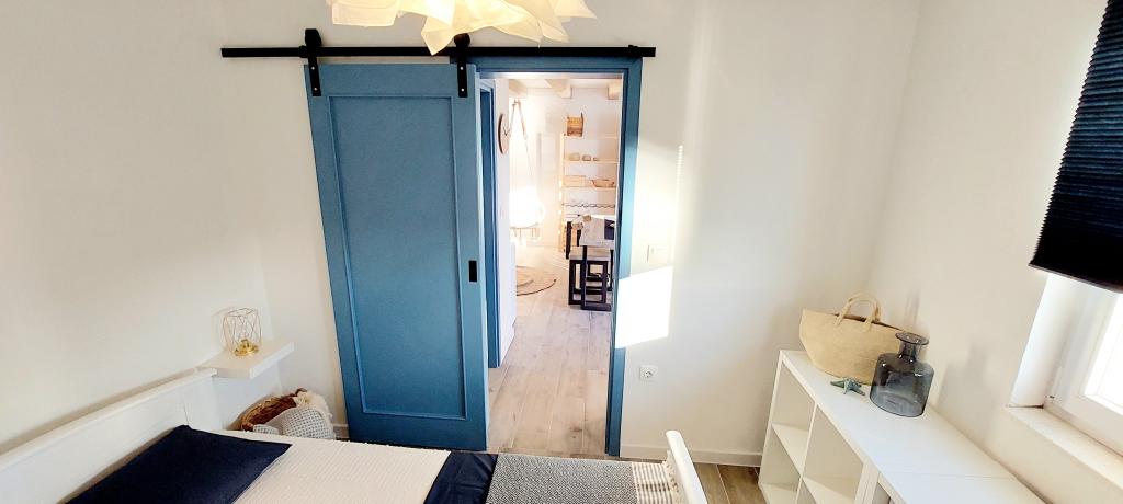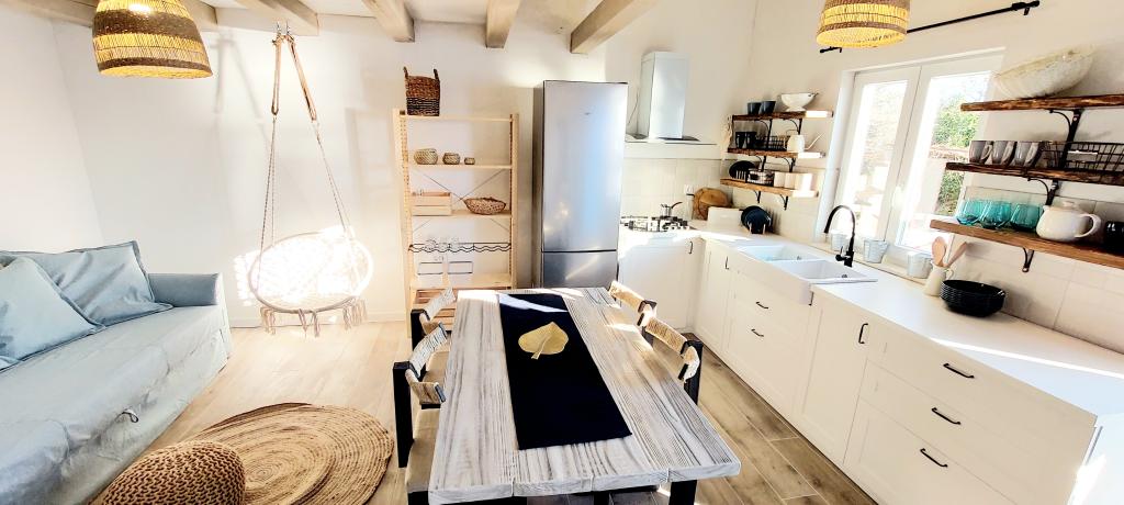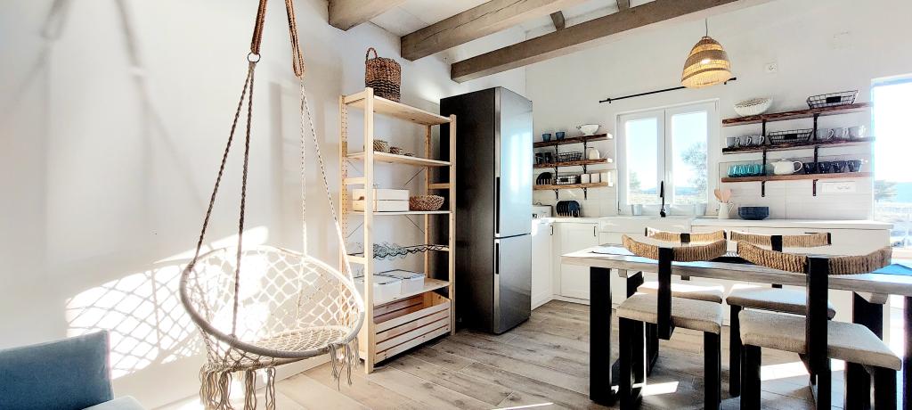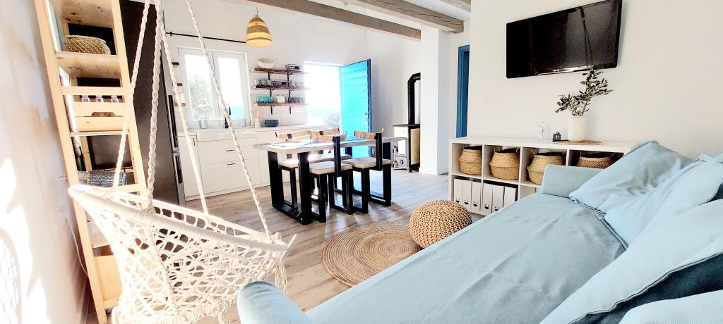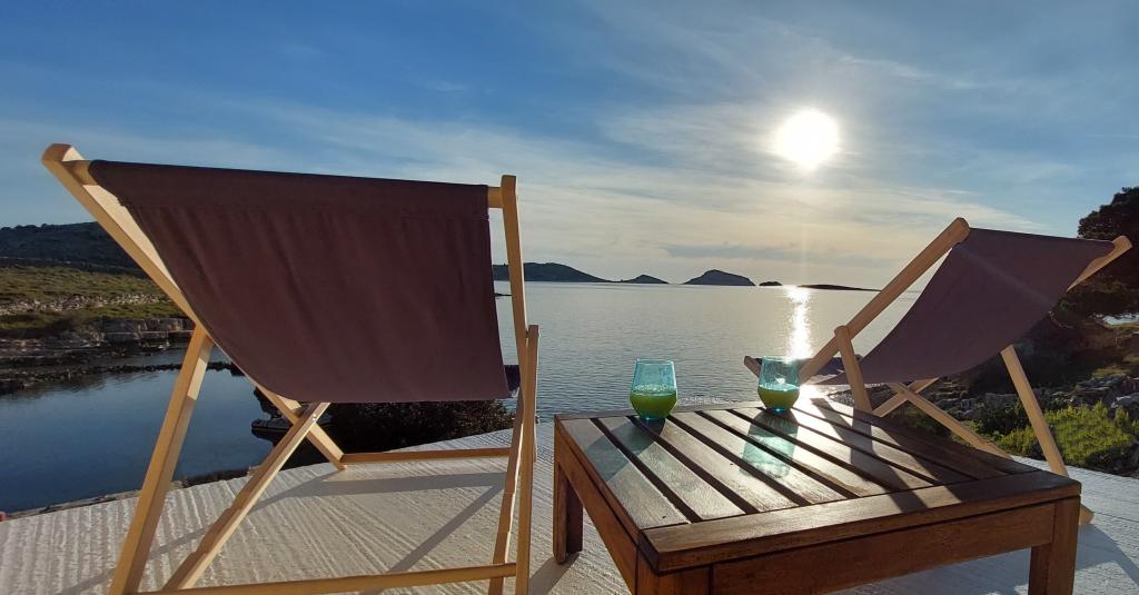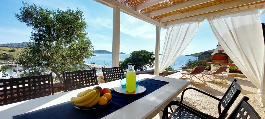 House by the sea surrounded by miles of blue Adriatic Sea and the deep peace of the untouched karst landscape. If you are more adventurous, love the original nature and need a real escape from everyday hustle and stress, this is the perfect place for you! The house is located in the bay Lučica in the heart of the National Park "Kornati". This will be your base for exploring the secrets of the most indented Mediterranean archipelago. The house (total 40m2 + 15m2 gallery) consists of a main room with kitchen, dining room and living room, small bathroom, one bedroom and a gallery. Guests have at their disposal an outdoor terrace with a garden (approximately 70m2). The house is located first row to the sea. It is only 10 meters away from the sea.