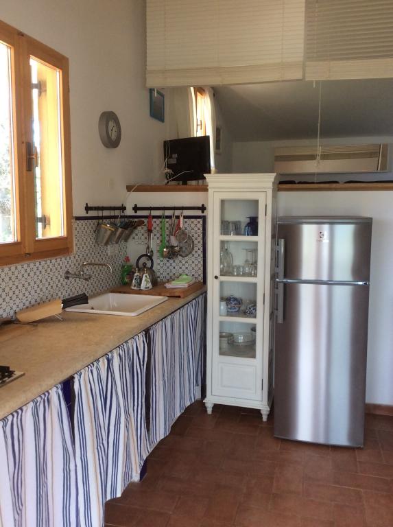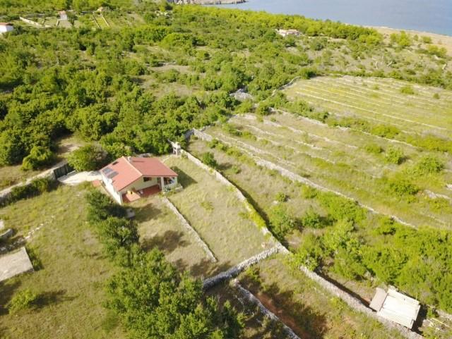 In the unspoiled nature, some 1000m away from the first settlement, there is a three-level house in a fenced-in garden. on the first level is a kitchen that has an outlet on terrace with pergola. and beautiful sea views. On the lower level is a room with a double bed and on the third level there is a living room with a sofa bed and a Tv SAT and a fully equipped bathroom with shower. Since it is a robotic object everything works on solar panels and the water is from wells. The house is reached by a paved road about 1000m.