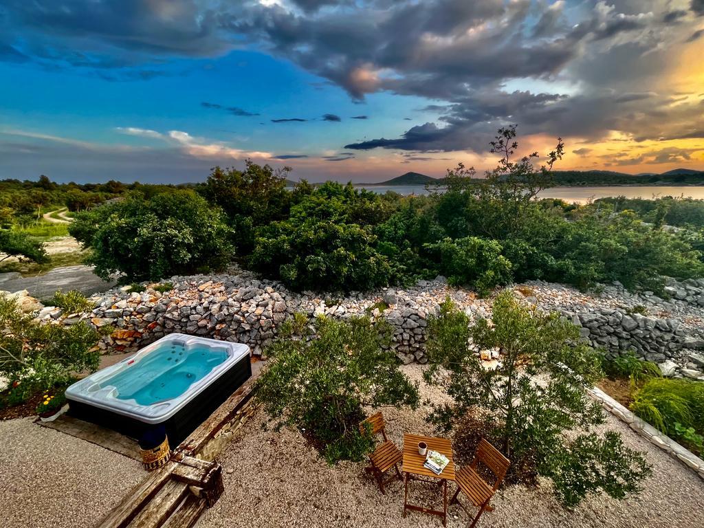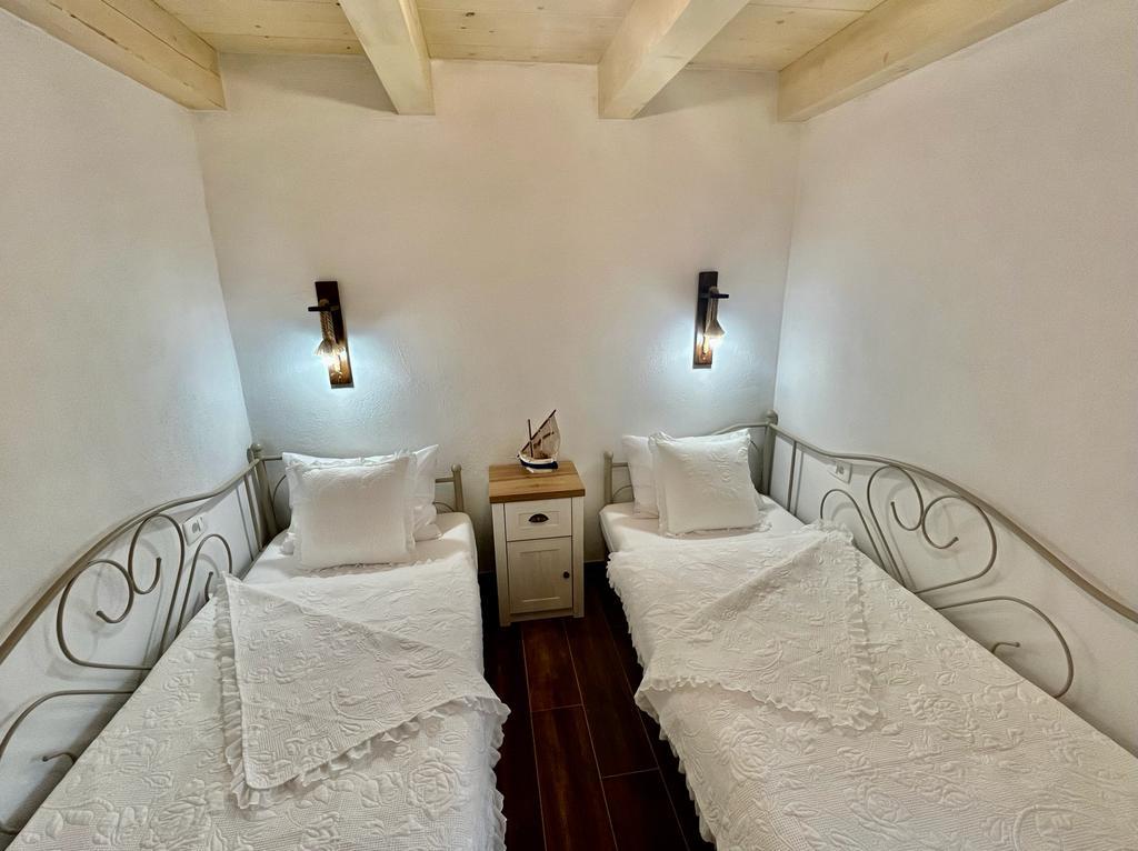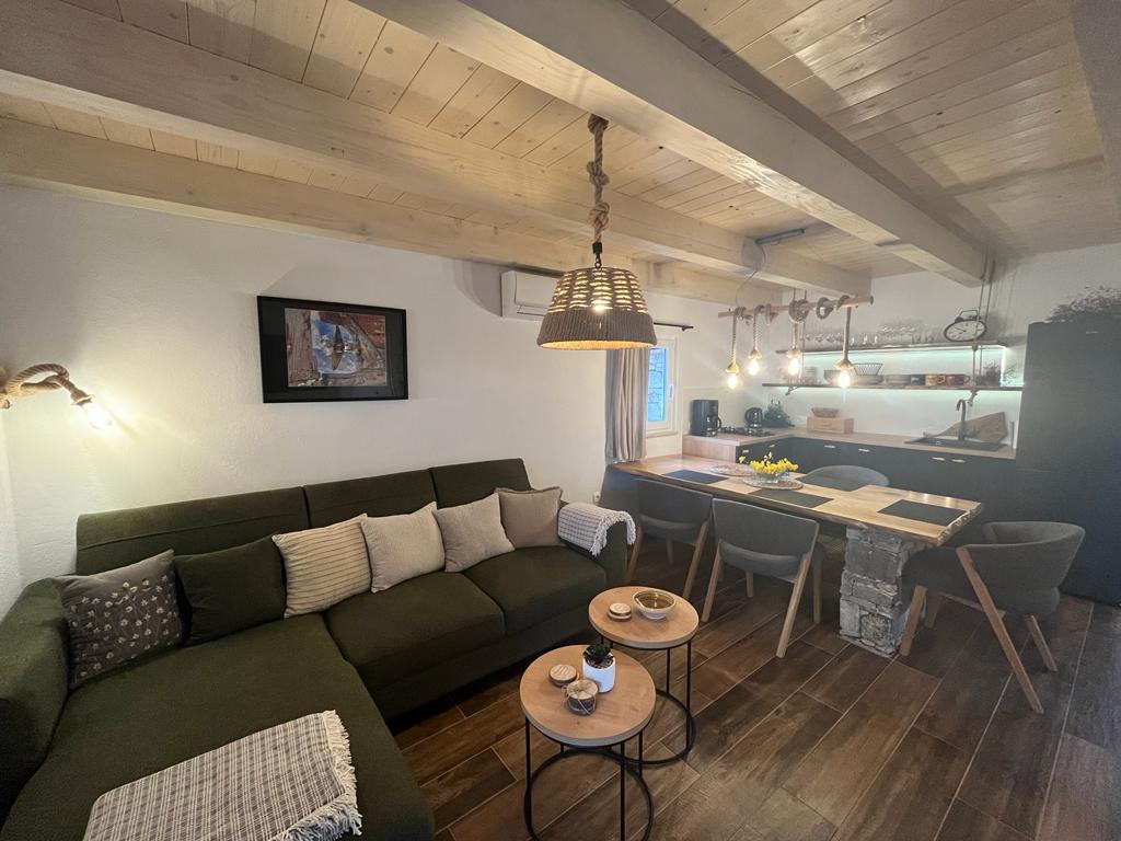 Luxury secluded house in an olive grove, next to the sea. We provide an unforgettable Robinson atmosphere of high quality accommodation. Arriving at the estate is possible by car. More parking spaces provided. We offer a large jacuzzi, outdoor garden furniture, sun loungers, swings, a large stone grill, outdoor shower. The facility is fully equipped for a comfortable stay, kitchen with all appliances (gas stove, refrigerator, freezer, dishwasher, coffee machine, kettle...Wi-fi, internet, satellite TV. The space is air-conditioned and has a central heating that allows you to stay even during the winter period.The bathroom has a spacious walk-in shower and washing machine, and other equipment.