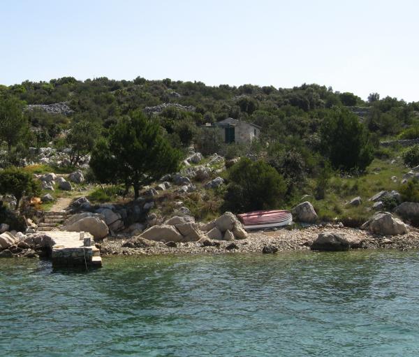 The accommodation is located on the island of Zminjak 1000 m from Murter, only 15 minutes by boat from the pier Luke (supply, bank, parking). The house is located in an olive grove, 30 meters from the sea with safe pier, beach and pine forest. Facing the West and the Kornati archipelago. The nearest house (70 meters) and an attractive restaurant (200 meters). The house has two facilities in 25m2: holiday apartment with kitchenette, bathroom and a well and a small house with a refrigerator, which is available as a storeroom. The house terrace exposed to the summer breeze overlooking the bay and the Kornati islands. Solar device 220v-60W, gas fireplace (grill). Ideal for 2-3 people. Safe haven and protected bay makes it an ideal for guests with their own minor or major vessels. Rent for a longer period than 15 days favorable. The price can be agreed upon depending on the date! Transportation to the island by appointment!