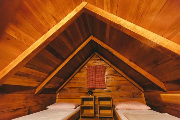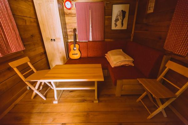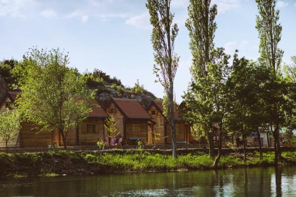 On the bank of the river canyon, directly to one of the impressive waterfalls and crystal clear river located property with four beautiful wooden bungalows. Each consists of two floors and accommodates 4 persons (and one extra bed). On the lower floor there is a handy kitchen (fridge, electric hot plate), and on the upper two beds and extra bed. In addition to the bungalows are barbecues and large wooden tables. Shower and toilet, and washing machine are located in posebnom- fifth bungalow. Guests have the option of using stone tavern where organized gatherings, watching TV or simply for shelter from the sun among the solid stone walls. We are located along the Velebit Nature Park, an hour's drive from the national park, Plitvice Lakes National Park and NP Kornati, and in half an hour from the cities of Zadar and Biograd. Also nearby is one of the most famous monasteries - Monastery Krupa from the 13th century If you decide to go - places Karin, Pridraga or in Novigrad are only 15 minutes away from the bungalows.